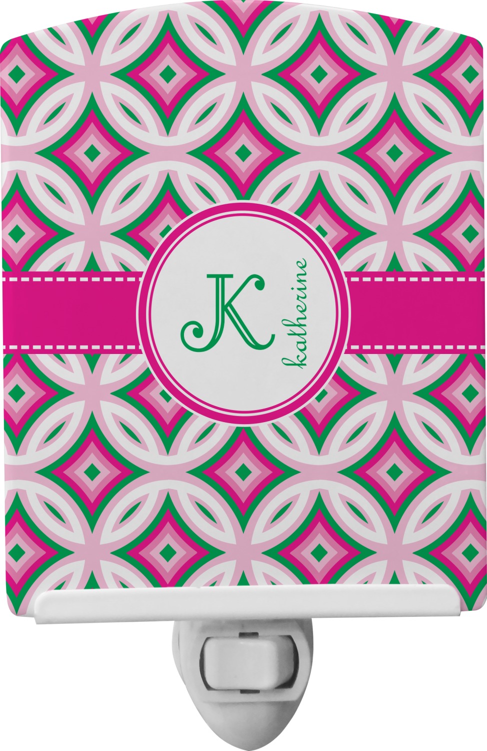 This baby night light is made of durable, ceramic plate that displays your customized design beneath a glossy finish. When this light is turned on, your personalization glows in the dark and offers a bit of light to any room or hallway. The plate also rotates easily. This plug-in night light has a white base with a convenient on and off switch. Additionally, the rotating plug allows you to plug them into US sockets horizontally or vertically. If your child outgrows the design years into the future, you can easily unscrew the plate and use it as a plain nightlight. With your purchase of this outlet night light, we include a 7-watt bulb.