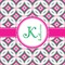 If you are looking for a design that is both girly and graphic, you will love Linked Circles & Diamonds Design. This design's color scheme is composed of light pink, hot pink, green and white. The pattern is exactly what the name implies circles and diamond intertwined through the whole design. Through the center there is label and ribbon shown in hot pink, but the color can be modified.