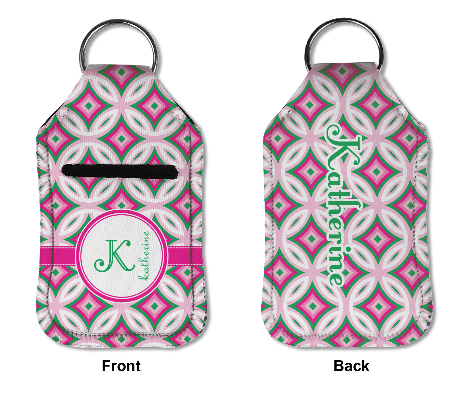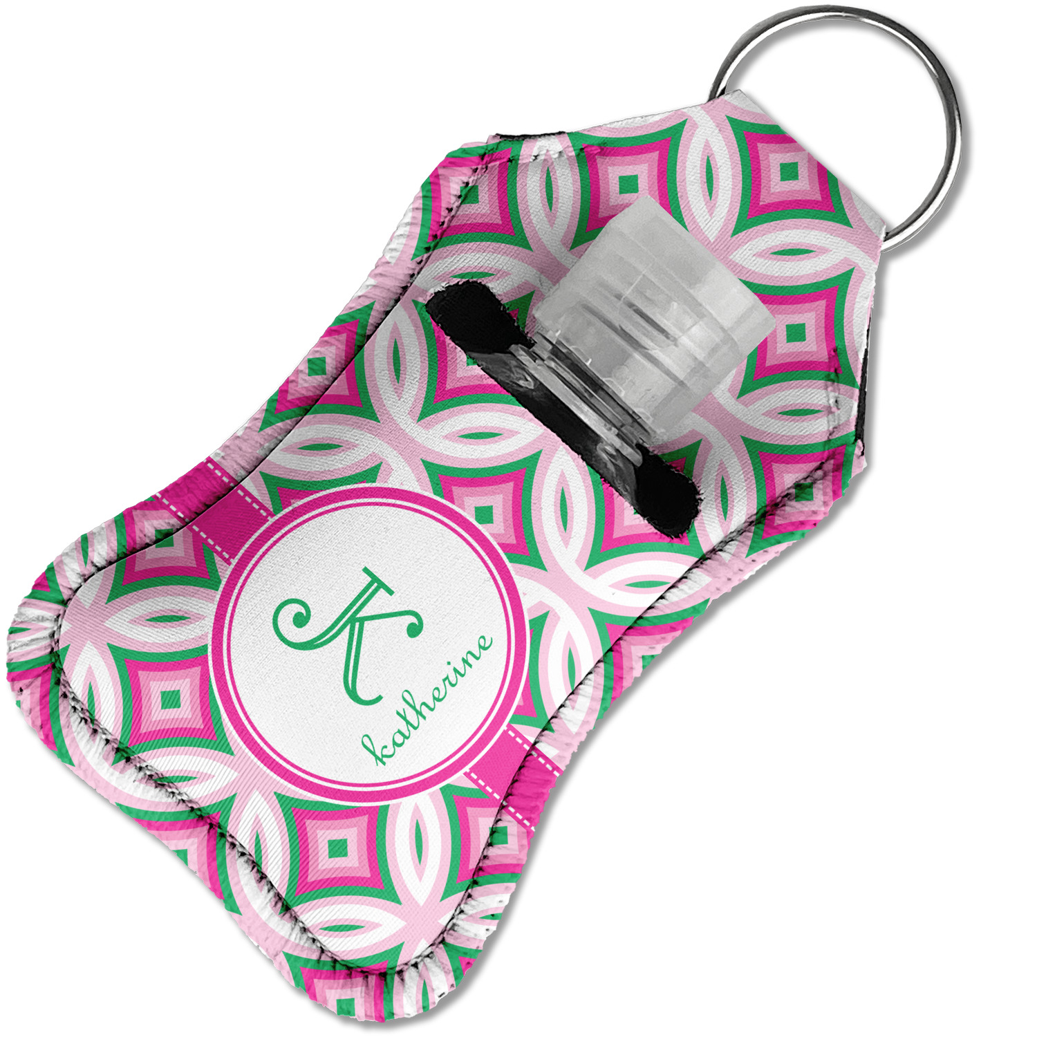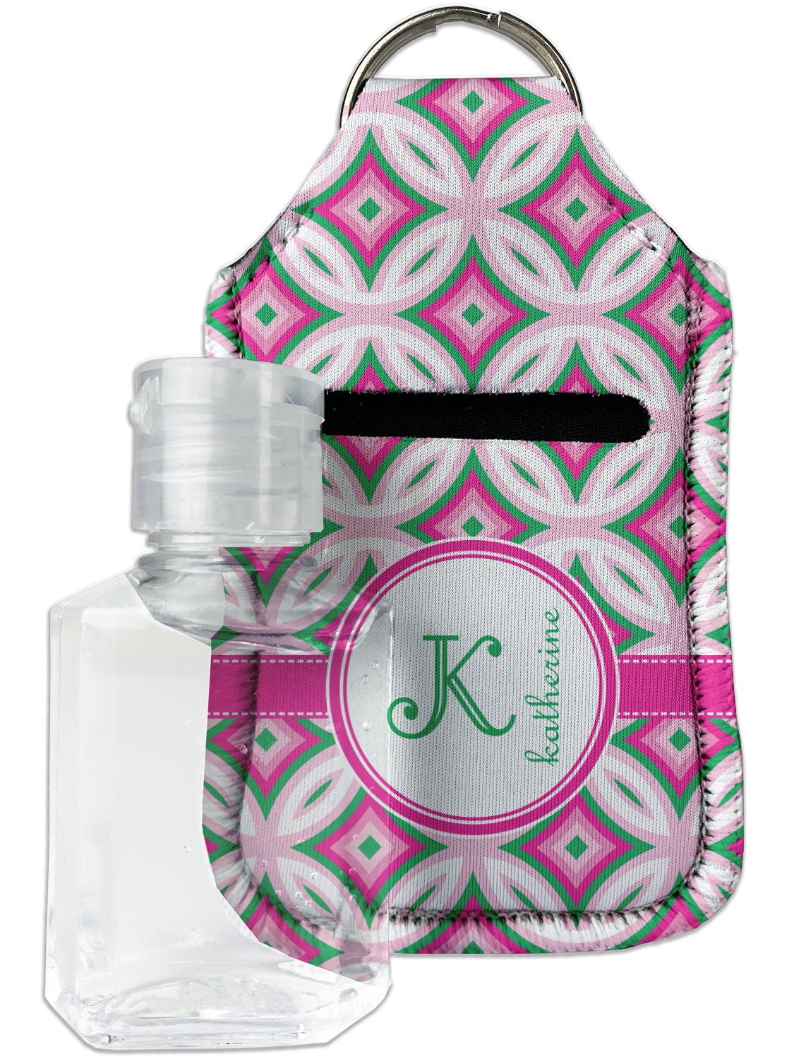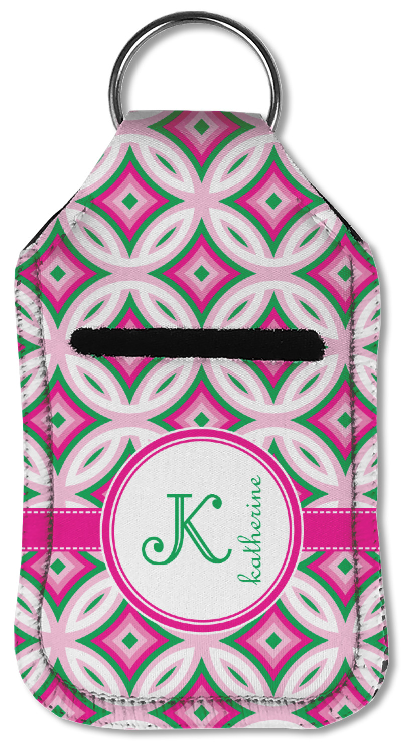 Each hand sanitizer holder comes with its own empty travel-sized, refillable hand sanitizer sure to fit snug in your customized sanitizer case! Our hand sanitizer cases are a durable, yet soft neoprene material sure to last any daily activities or travel agenda. Customize and personalize a hand sanitizer bottle holder with one of our two sizes - small (4.25" x 2.25") or large (5.5" x 2.5"). Each travel sanitizer holder comes with a keyring for attachment on bags, keys, or more!