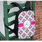 If you are looking for a design that is both girly and graphic, you will love Linked Circles & Diamonds Design. This design's color scheme is composed of light pink, hot pink, green and white. The pattern is exactly what the name implies circles and diamond intertwined through the whole design. Through the center there is label and ribbon shown in hot pink, but the color can be modified.