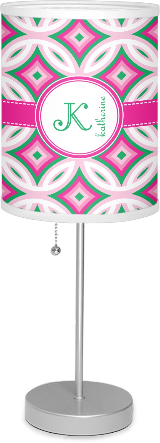 If you are looking for a design that is both girly and graphic, you will love Linked Circles & Diamonds Design. This design's color scheme is composed of light pink, hot pink, green and white. The pattern is exactly what the name implies circles and diamond intertwined through the whole design. Through the center there is label and ribbon shown in hot pink, but the color can be modified.