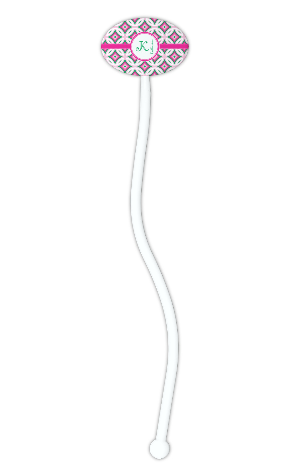 If you are looking for a design that is both girly and graphic, you will love Linked Circles & Diamonds Design. This design's color scheme is composed of light pink, hot pink, green and white. The pattern is exactly what the name implies circles and diamond intertwined through the whole design. Through the center there is label and ribbon shown in hot pink, but the color can be modified.