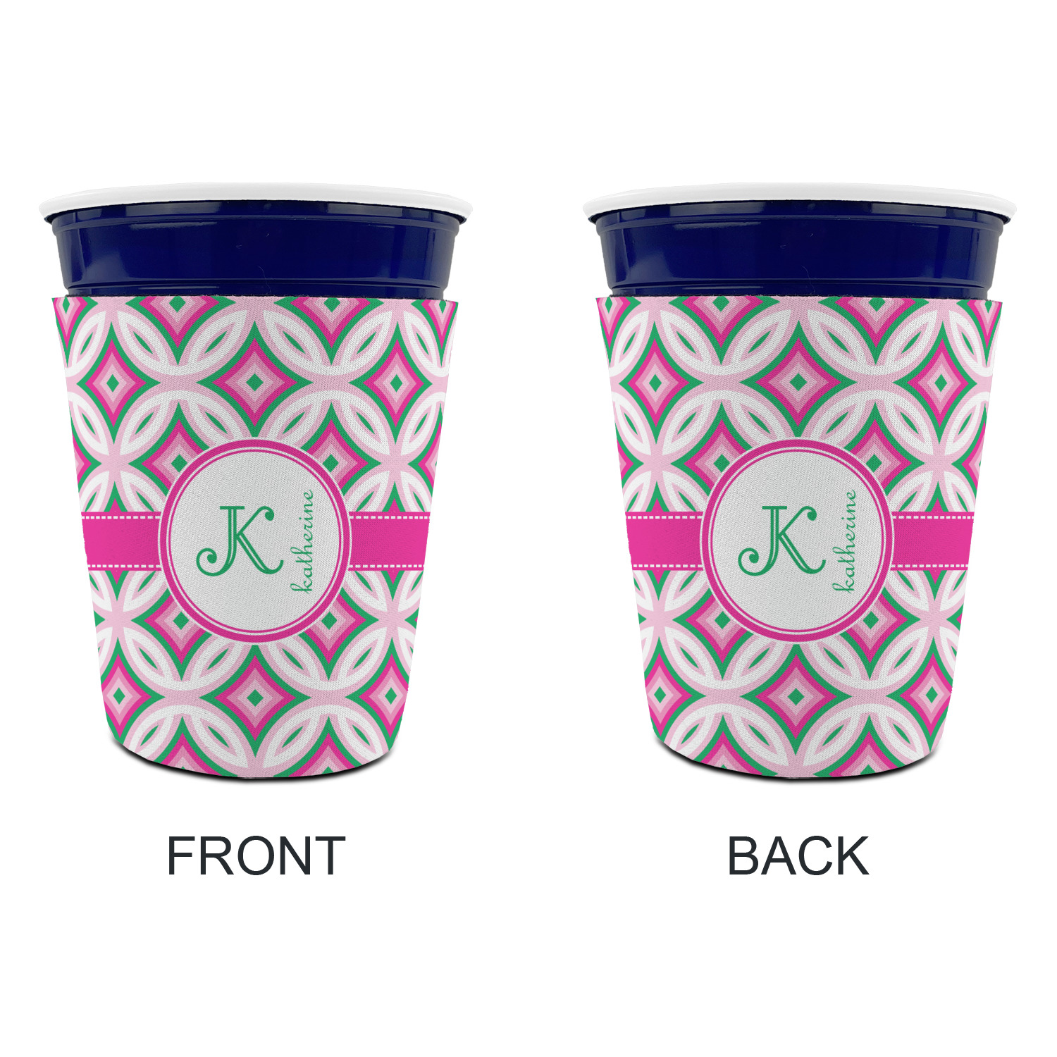 Made from neoprene with a polyester outer fabric and sewn seams, these premium quality party cup sleeves are very durable and will hold up to heavy use. They are available in 2 styles - with a bottom or just a sleeve to go around the outside of the tapered cup. The sleeve covers are about 4" tall and cover about 90% of the classic 16 oz. Solo cup.