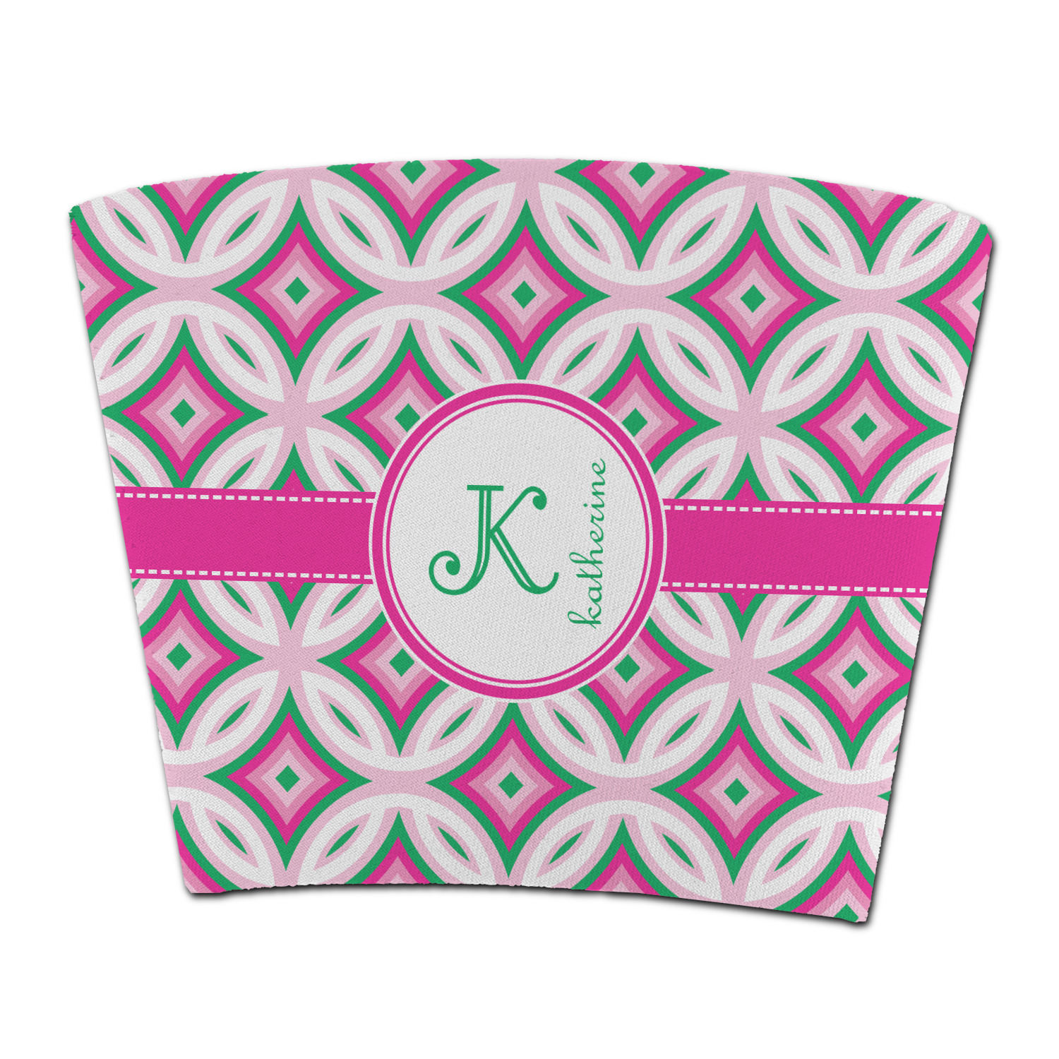If you are looking for a design that is both girly and graphic, you will love Linked Circles & Diamonds Design. This design's color scheme is composed of light pink, hot pink, green and white. The pattern is exactly what the name implies circles and diamond intertwined through the whole design. Through the center there is label and ribbon shown in hot pink, but the color can be modified.
