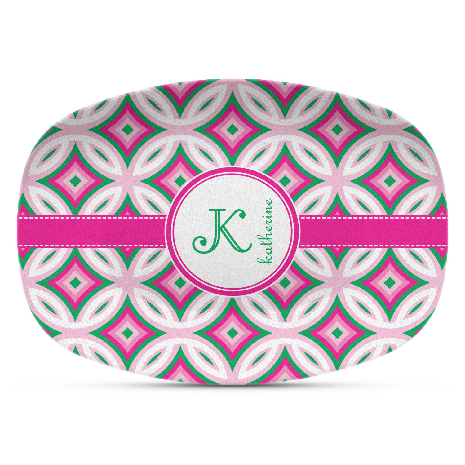 These serving platters are made from a composite, thermo-set, polymer plastic that gives it the versatility, durability, and weight of a melamine platter, without any of the downsides of melamine. These personalized platters, can withstand temperatures up to 250 degrees Fahrenheit, for up to 60 minutes. No harmful chemicals, such as BPA, formaldehyde, and DEHPs were used in the manufacturing of this product. This large serving platter measures at 14" x 10.25", and is spacious enough to hold any of your appetizers or bite-sized desserts. The platter exhibits your personalization across the entirety of its front.
