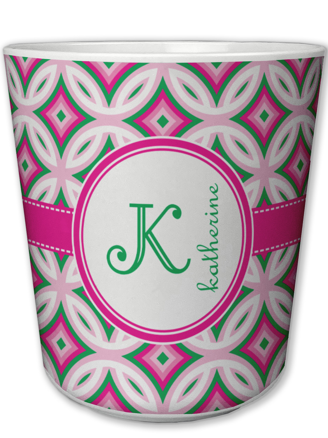 If you are looking for a design that is both girly and graphic, you will love Linked Circles & Diamonds Design. This design's color scheme is composed of light pink, hot pink, green and white. The pattern is exactly what the name implies circles and diamond intertwined through the whole design. Through the center there is label and ribbon shown in hot pink, but the color can be modified.