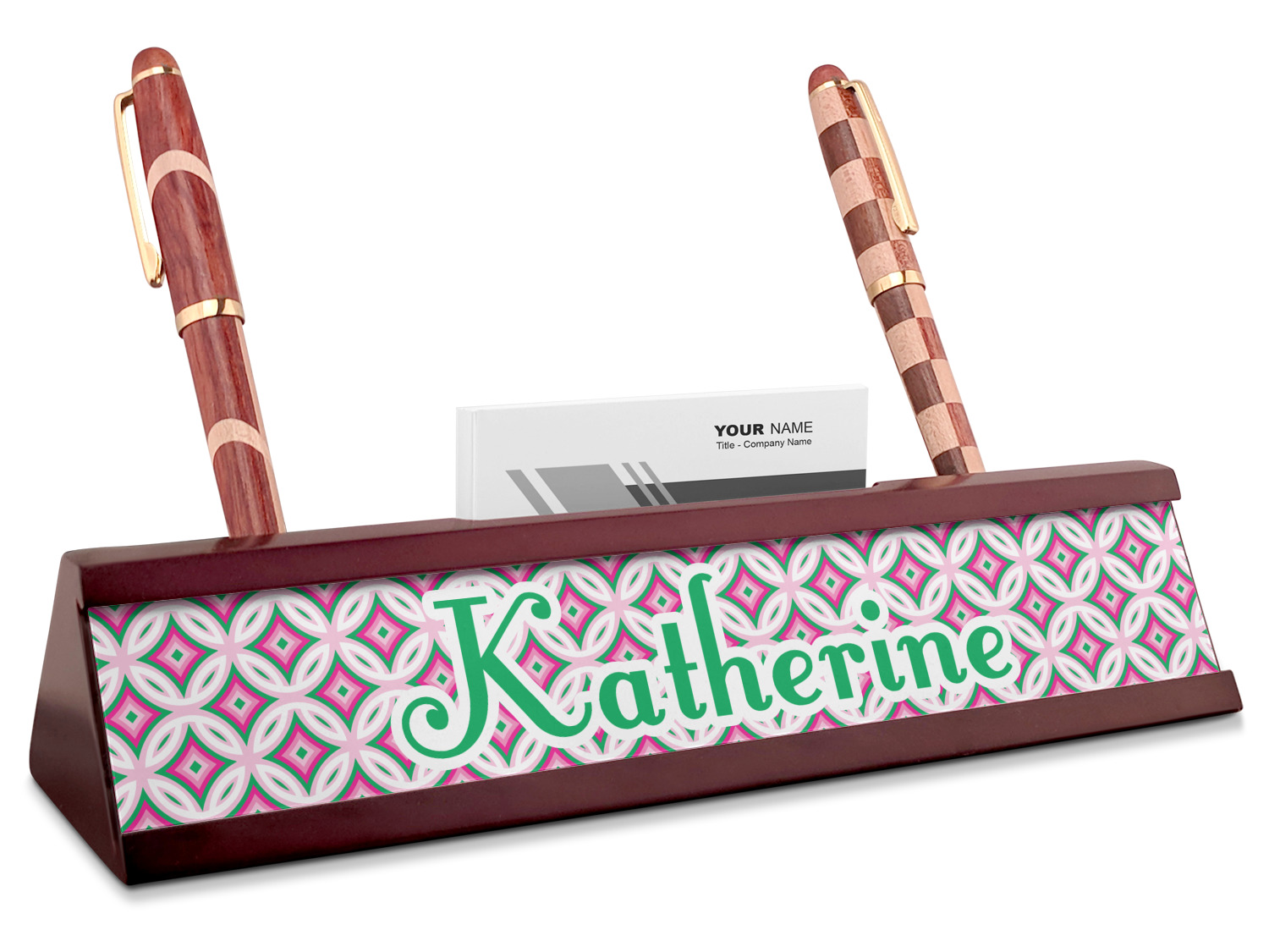 Shape + Symbol Designs for Red Mahogany Nameplates with Business Card Holder