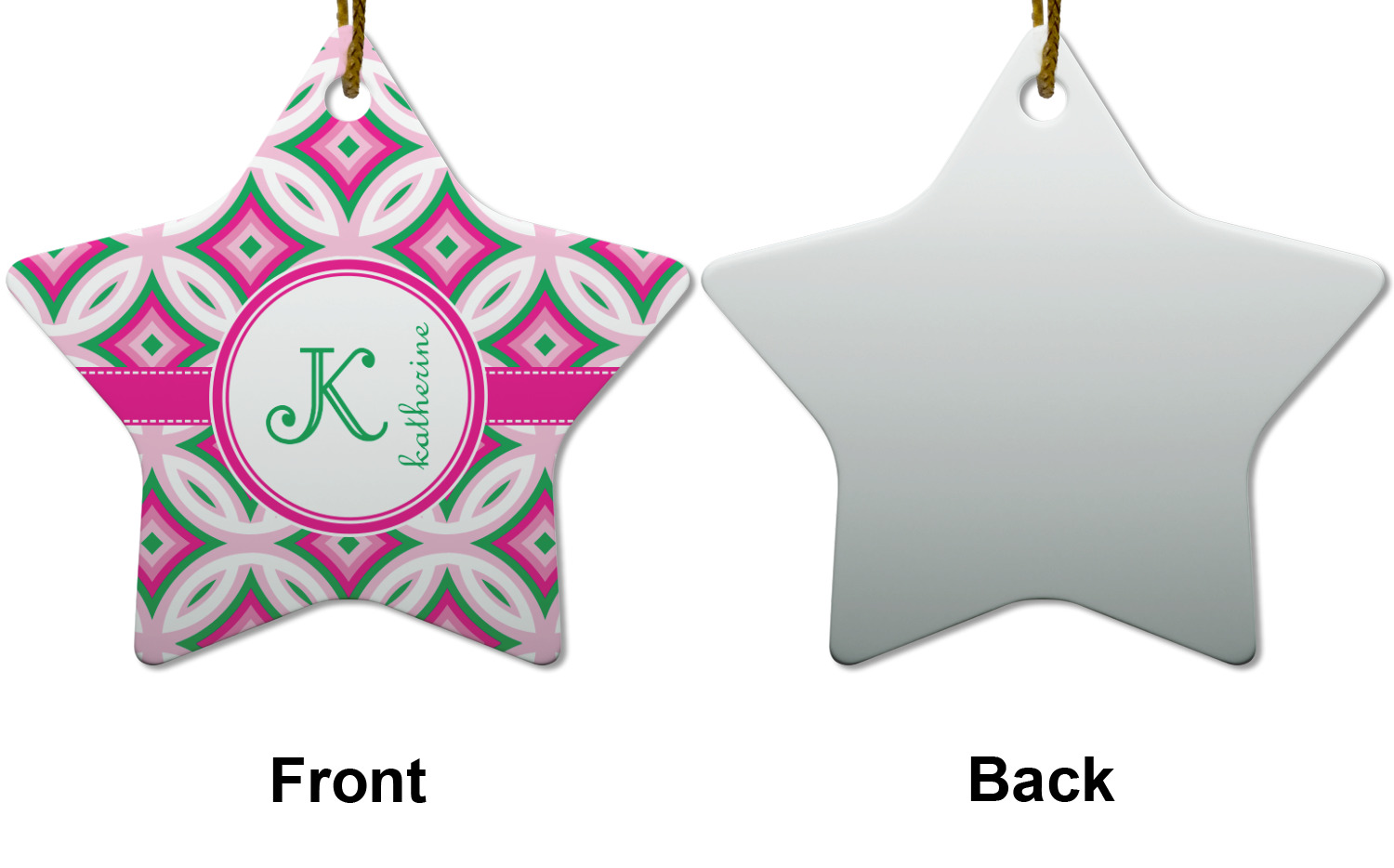 Have a happy holiday and share the joy of Christmas with your loved ones by hanging up personalized ceramic ornaments! Ornaments add a touch of who you are and the things you love onto the Christmas tree! Create custom ornaments for the kids and have them hang up their own star with their name, or pay remembrance this holiday to missed loved ones with our ceramic heart ornament. Browse many of our unique designs and customize them the way you'd like! From monograms, logos, and patterns, we have it all! You can even upload a photo of your family for us to print onto the ornament! The possibilities are endless!