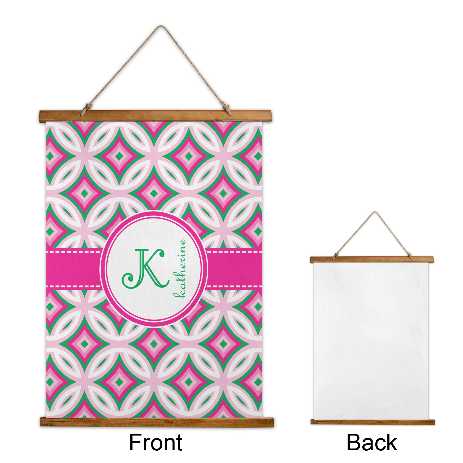 Made in two different orientations - portrait or landscape - both are 26" x 36". Your design is printed on a high quality polyester fabric with hemmed edges. The wood on the top and bottom of the tapestry is 1.25" tall and 0.25" thick and there are two pieces on top and bottom which sandwich the fabric.