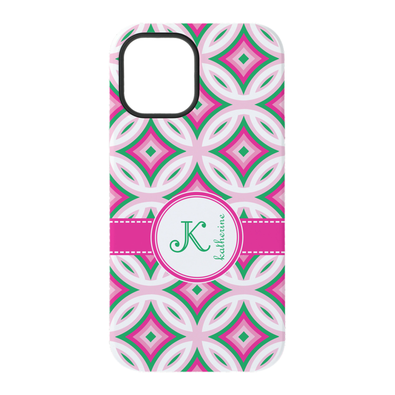 If you are looking for a design that is both girly and graphic, you will love Linked Circles & Diamonds Design. This design's color scheme is composed of light pink, hot pink, green and white. The pattern is exactly what the name implies circles and diamond intertwined through the whole design. Through the center there is label and ribbon shown in hot pink, but the color can be modified.