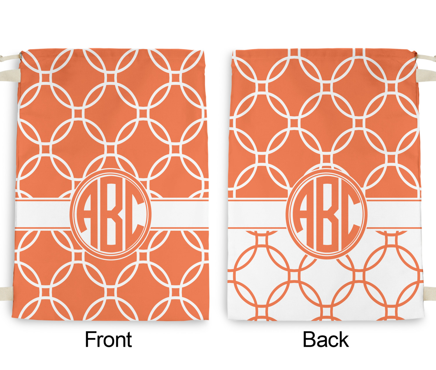 Carry your laundry in style with these customized laundry bags. Available in two sizes, featuring a natural colored woven strap and a cinch cord, these bags hold a lot of clothes or anything else you want to fit in them.