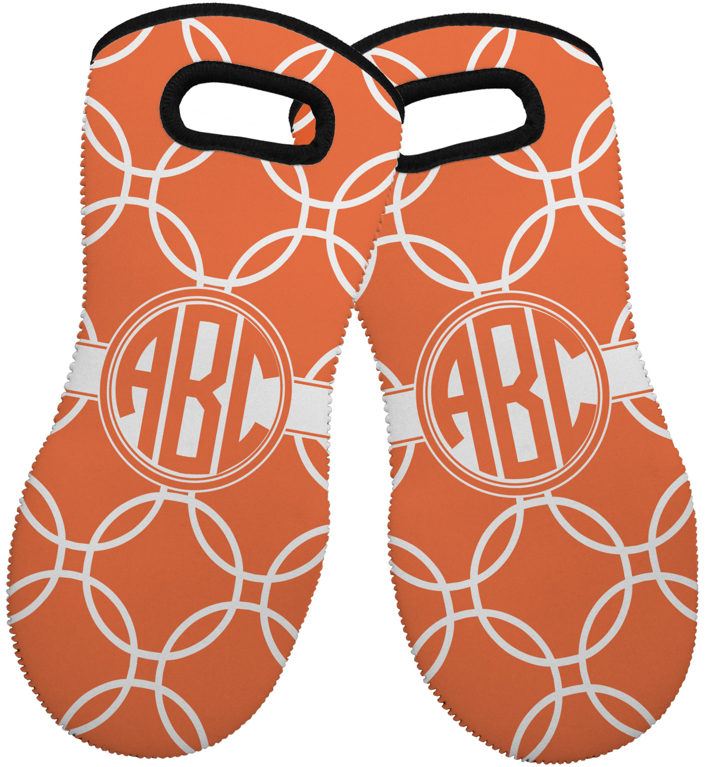 These heat resistant gloves are made entirely of a durable neoprene; the front features a softer texture, while the palm's side has a textured surface, meant to handle heat up to 500 degrees Fahrenheit. Thick, heavy duty stitching connects the two sides. A small, oval cutout appears on the front, and can be used to hang and store the mitt. Your personalization appears on the front, and the upper part of the back of the mitt. The style of these oven mitts are suitable for both the right and left hand, depending on your needs. If you need one for each hand, be sure to order two!