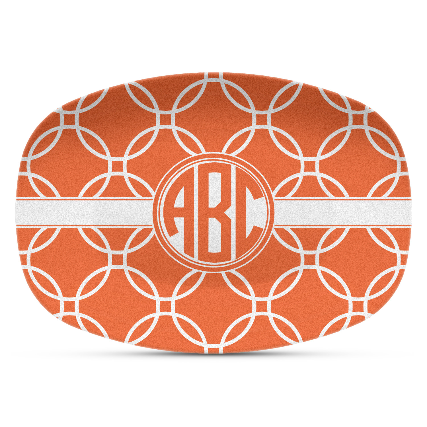 These serving platters are made from a composite, thermo-set, polymer plastic that gives it the versatility, durability, and weight of a melamine platter, without any of the downsides of melamine. These personalized platters, can withstand temperatures up to 250 degrees Fahrenheit, for up to 60 minutes. No harmful chemicals, such as BPA, formaldehyde, and DEHPs were used in the manufacturing of this product. This large serving platter measures at 14" x 10.25", and is spacious enough to hold any of your appetizers or bite-sized desserts. The platter exhibits your personalization across the entirety of its front.