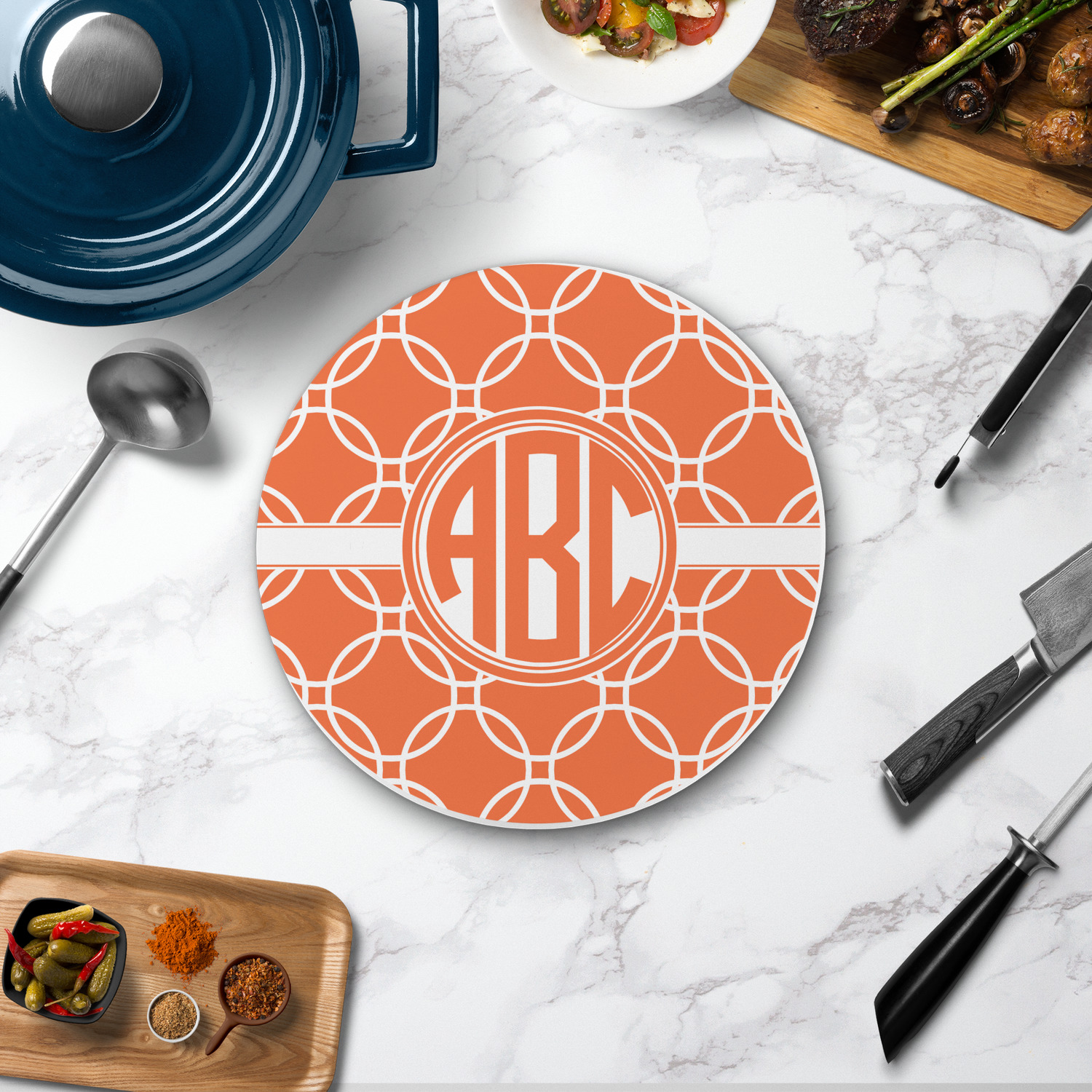 The round trivets can be customized with your own design, your own photo, or your own logo. You can add personalization, like a monogram, family name or initial to your uploaded design / art. You can also customize one of our designs and change the patterns, colors, personalization, fonts etc.