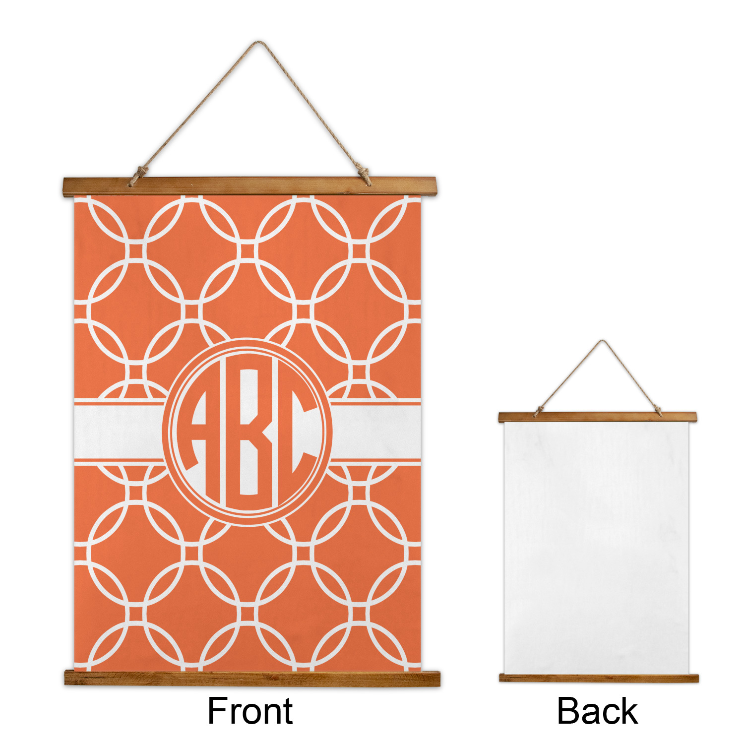 Made in two different orientations - portrait or landscape - both are 26" x 36". Your design is printed on a high quality polyester fabric with hemmed edges. The wood on the top and bottom of the tapestry is 1.25" tall and 0.25" thick and there are two pieces on top and bottom which sandwich the fabric.