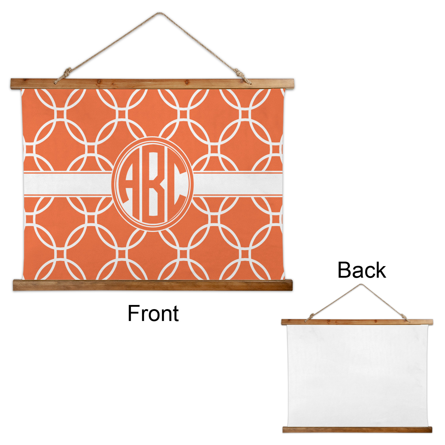 Made in two different orientations - portrait or landscape - both are 26" x 36". Your design is printed on a high quality polyester fabric with hemmed edges. The wood on the top and bottom of the tapestry is 1.25" tall and 0.25" thick and there are two pieces on top and bottom which sandwich the fabric.