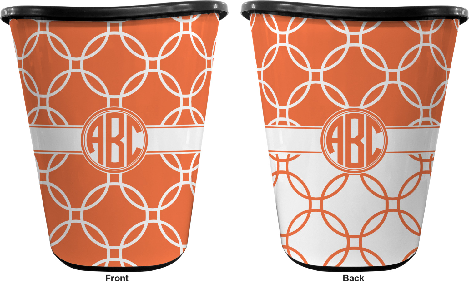 You can choose to purchase these decorative wastebaskets in either a white or a black color that will show on the base and the upper rim. Your customization is printed on a high-gloss, fine-quality vinyl adhesive, and you can choose to either have this adhesive applied to one side only or to both sides. As such, this plastic wastebasket can be single-sided or double-sided, depending on your creative vision. Your customization is printed using durable inks, making the design waterproof and resistant to fading over time.