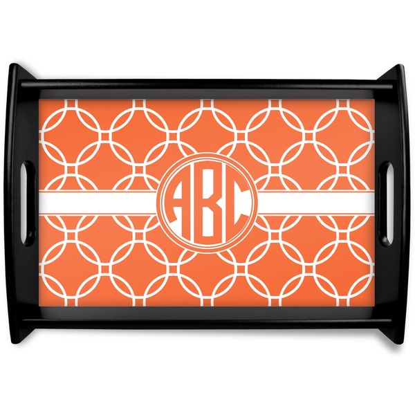 This serving tray with handles features square edges and two rounded sides, creating a very modern look. Each side is fabricated from a beautifully cut, natural wood. The bottom of the interior of the tray displays your customized design in bright, vibrant color. The tray is sold in both a black color and a natural wood look. Each variation of the wood serving tray has two sizes: Small, which is 14" x 10" x 2.25", and Large, which is 19.5" x 13.5" x 2.75".