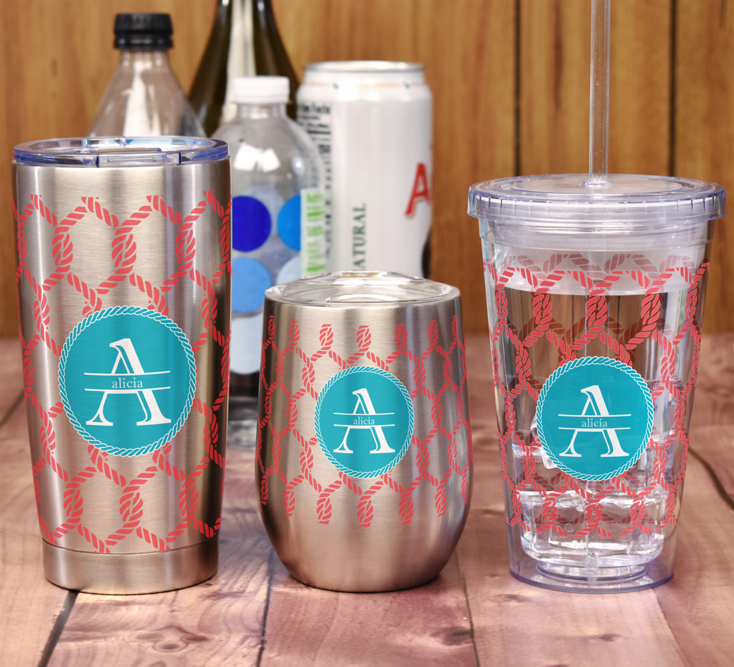 This linked ropes design is perfect for your real or dream beach house. The nautical design has ropes linked together to form diamonds. We have chosen a coral and teal palette for our design. We also chose a rope label and a name initial combination for our personalization.