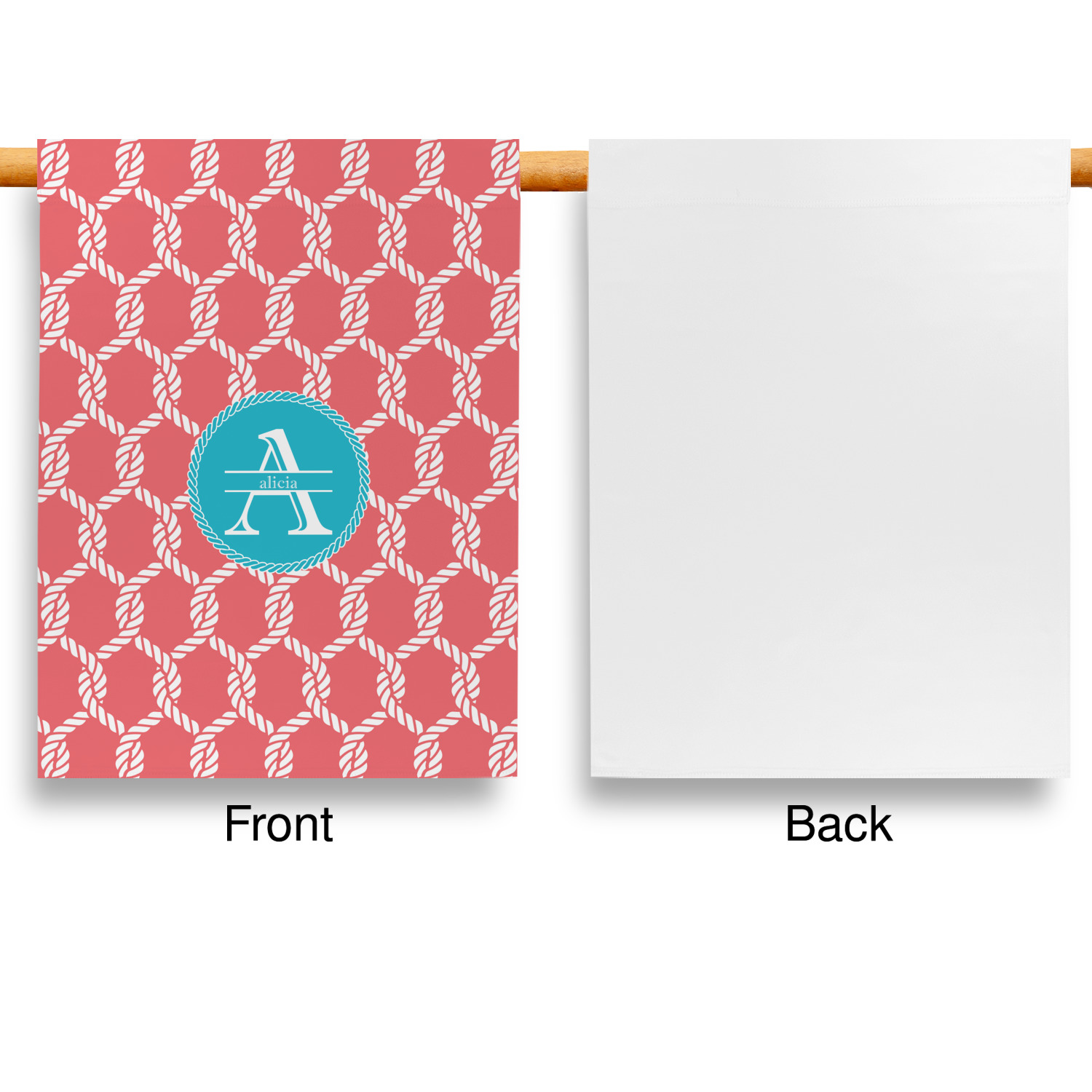 This linked ropes design is perfect for your real or dream beach house. The nautical design has ropes linked together to form diamonds. We have chosen a coral and teal palette for our design. We also chose a rope label and a name initial combination for our personalization.