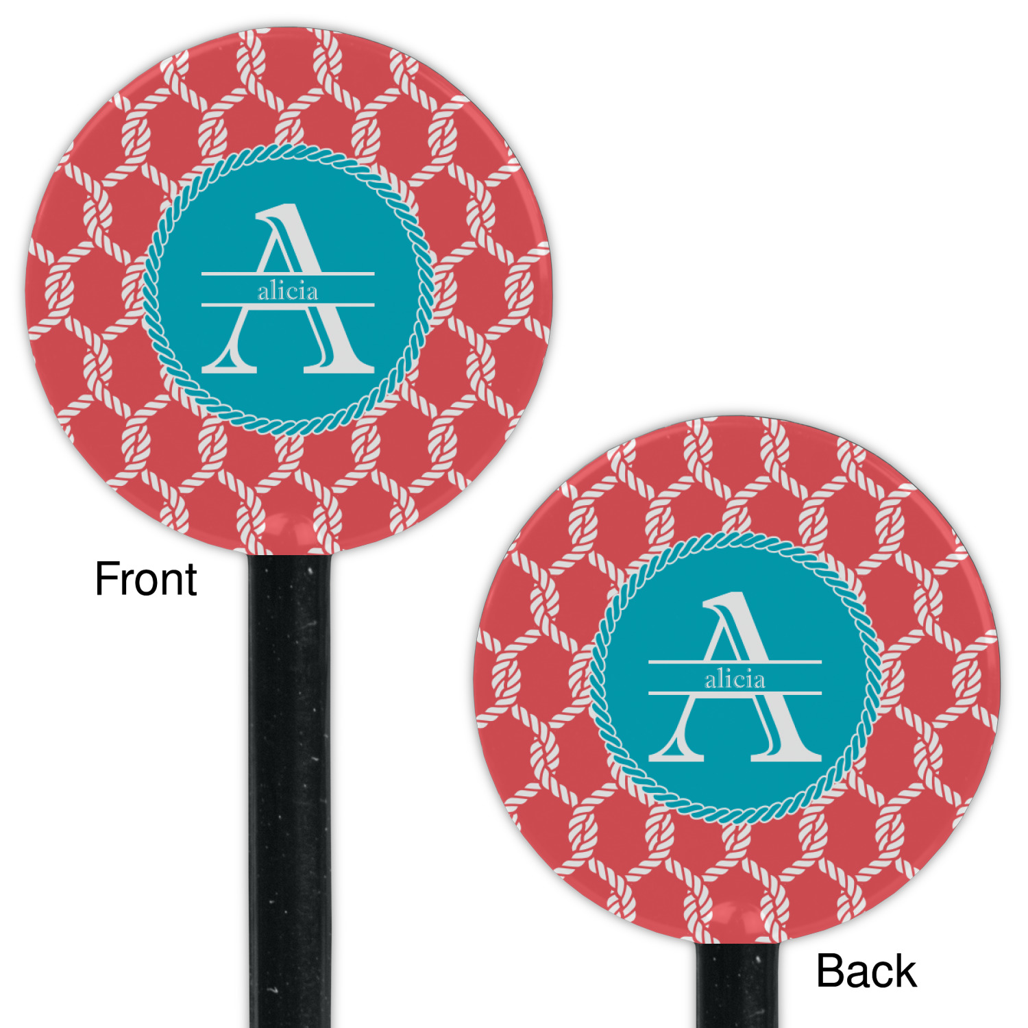Coastal / Beach Style Designs for 5.5" Round Plastic Stir Sticks - Black - Double-Sided