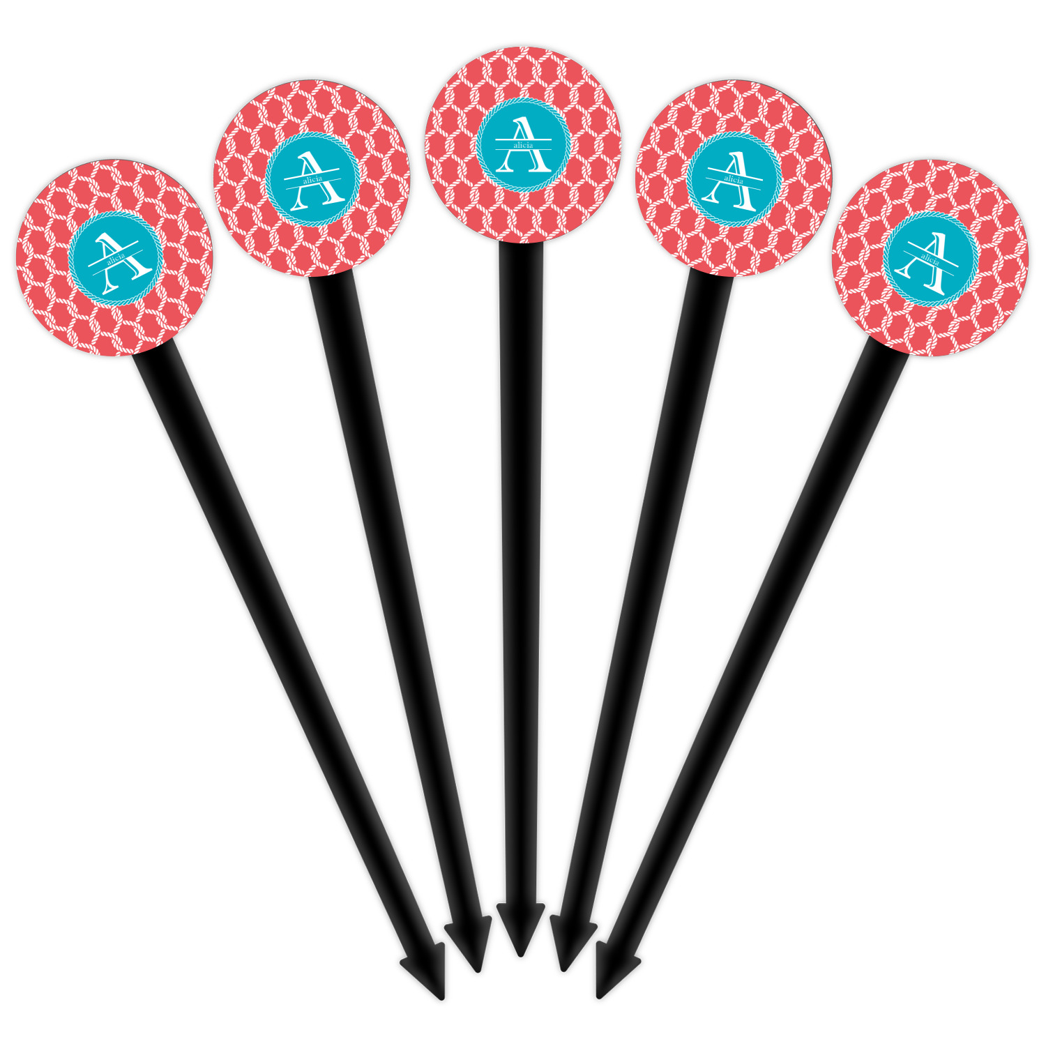 Coastal / Beach Style Designs for 6" Round Plastic Food Picks - Black - Single-Sided