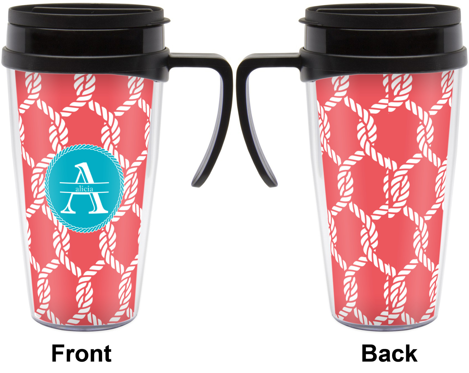 These thermal mugs are free of BPA, and insulated, to keep your drinks hot or cold. The black, snap on lid and the slider for sipping allows you to conveniently sip your drink without constantly worrying about a disastrous spill. We offer this mug with and without a handle, to better suit your needs. Each custom thermal mug holds up to 16 ounces of liquid and displays your customization on all sides on premium gloss media inserts.