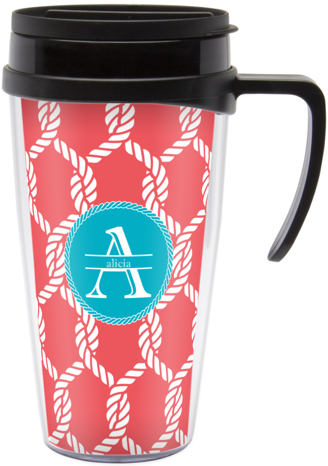 This linked ropes design is perfect for your real or dream beach house. The nautical design has ropes linked together to form diamonds. We have chosen a coral and teal palette for our design. We also chose a rope label and a name initial combination for our personalization.