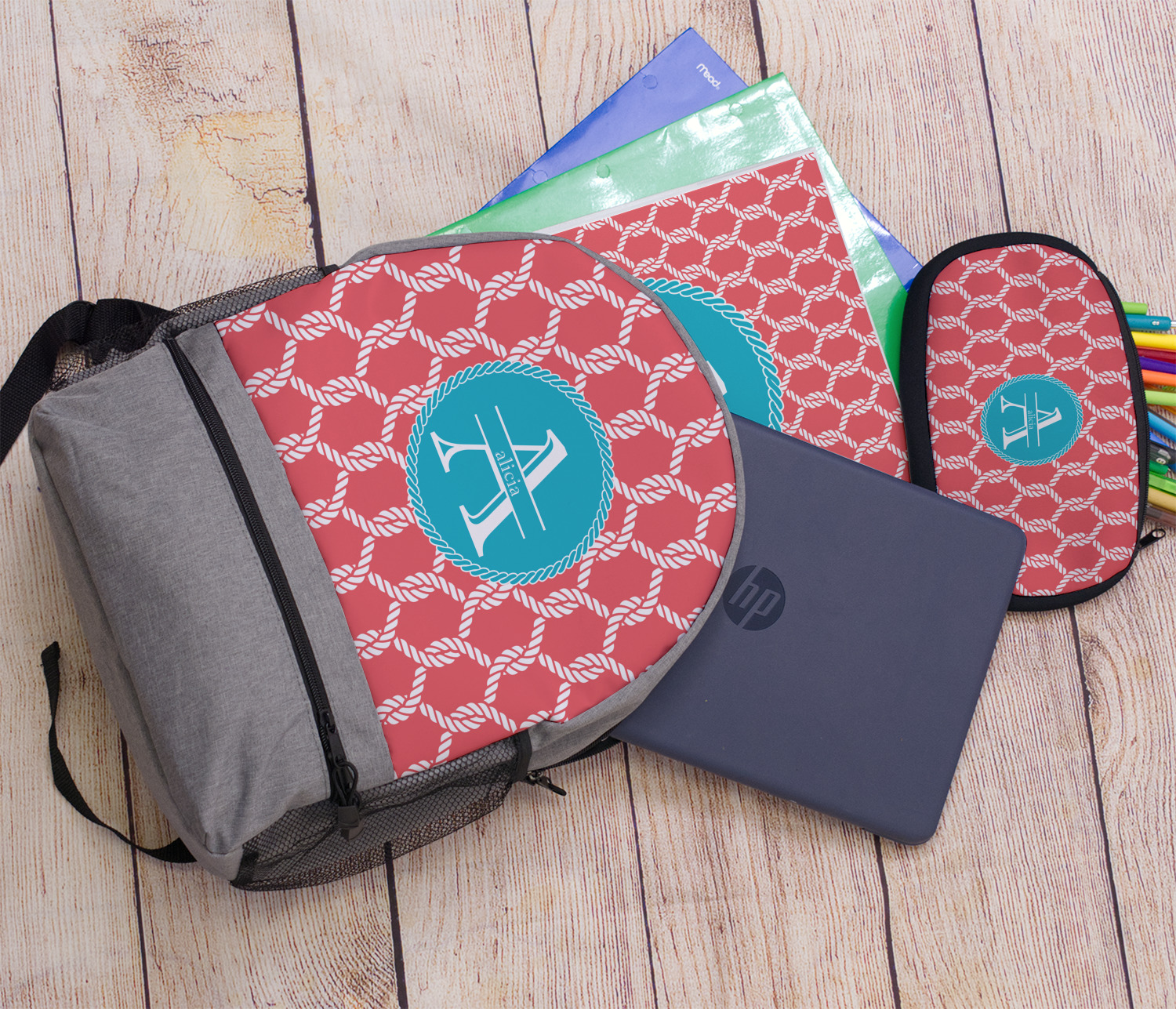 This linked ropes design is perfect for your real or dream beach house. The nautical design has ropes linked together to form diamonds. We have chosen a coral and teal palette for our design. We also chose a rope label and a name initial combination for our personalization.