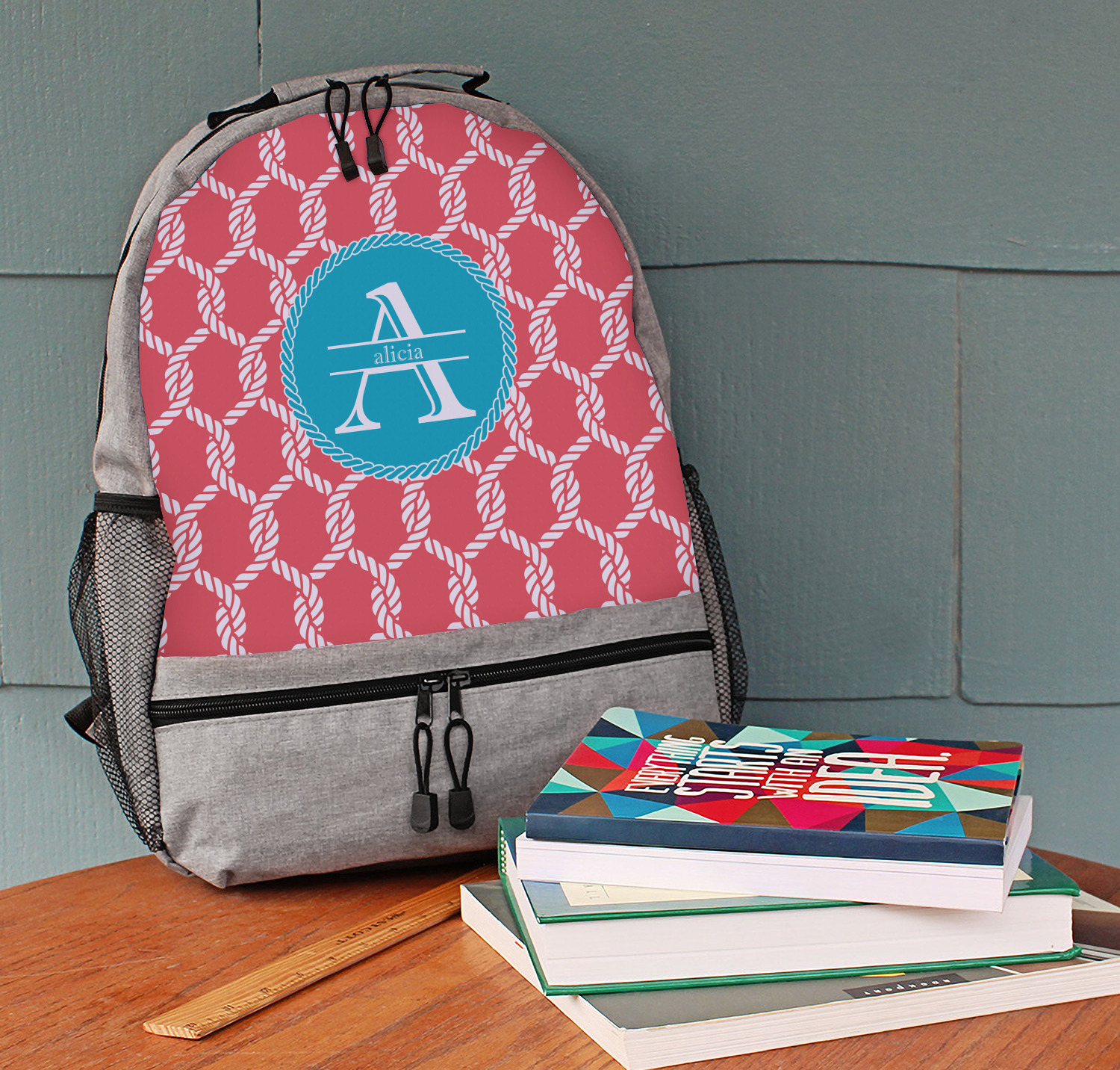 This linked ropes design is perfect for your real or dream beach house. The nautical design has ropes linked together to form diamonds. We have chosen a coral and teal palette for our design. We also chose a rope label and a name initial combination for our personalization.
