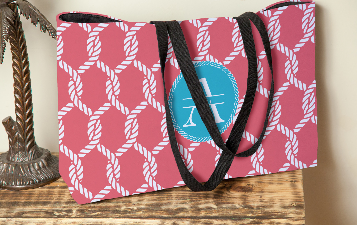 This linked ropes design is perfect for your real or dream beach house. The nautical design has ropes linked together to form diamonds. We have chosen a coral and teal palette for our design. We also chose a rope label and a name initial combination for our personalization.