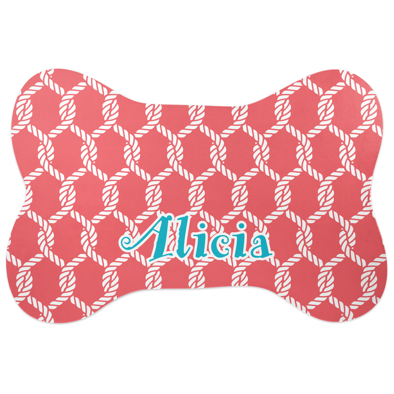 The bone-shaped dog bowl mat is the perfect way to add a touch of personality to your dog's eating area! Dogs make inevitable messes, especially when they eat and drink. Save the integrity of your floors and the time spent cleaning them by purchasing a personalized mat that catches spills!