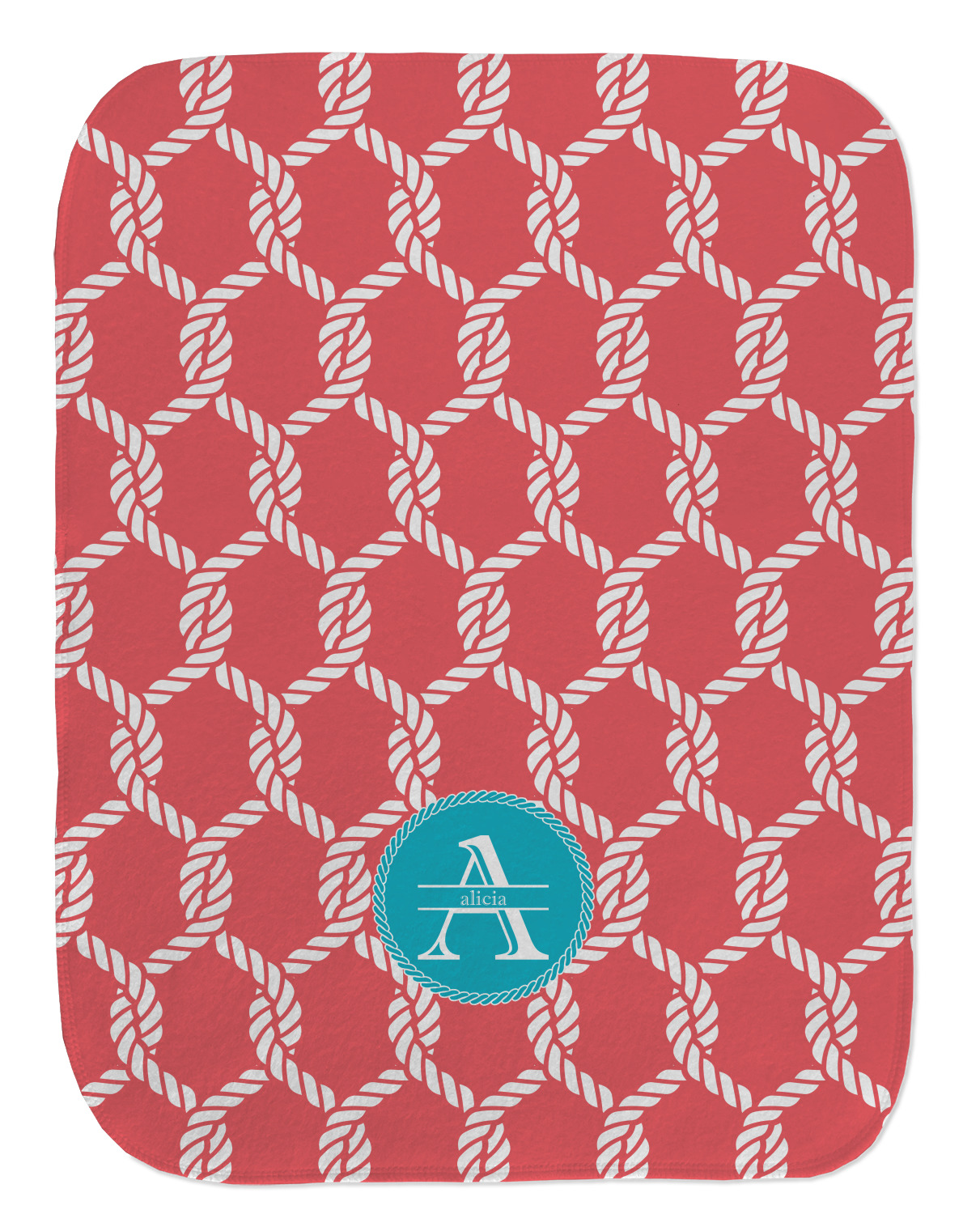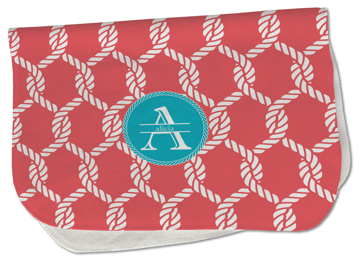 This linked ropes design is perfect for your real or dream beach house. The nautical design has ropes linked together to form diamonds. We have chosen a coral and teal palette for our design. We also chose a rope label and a name initial combination for our personalization.