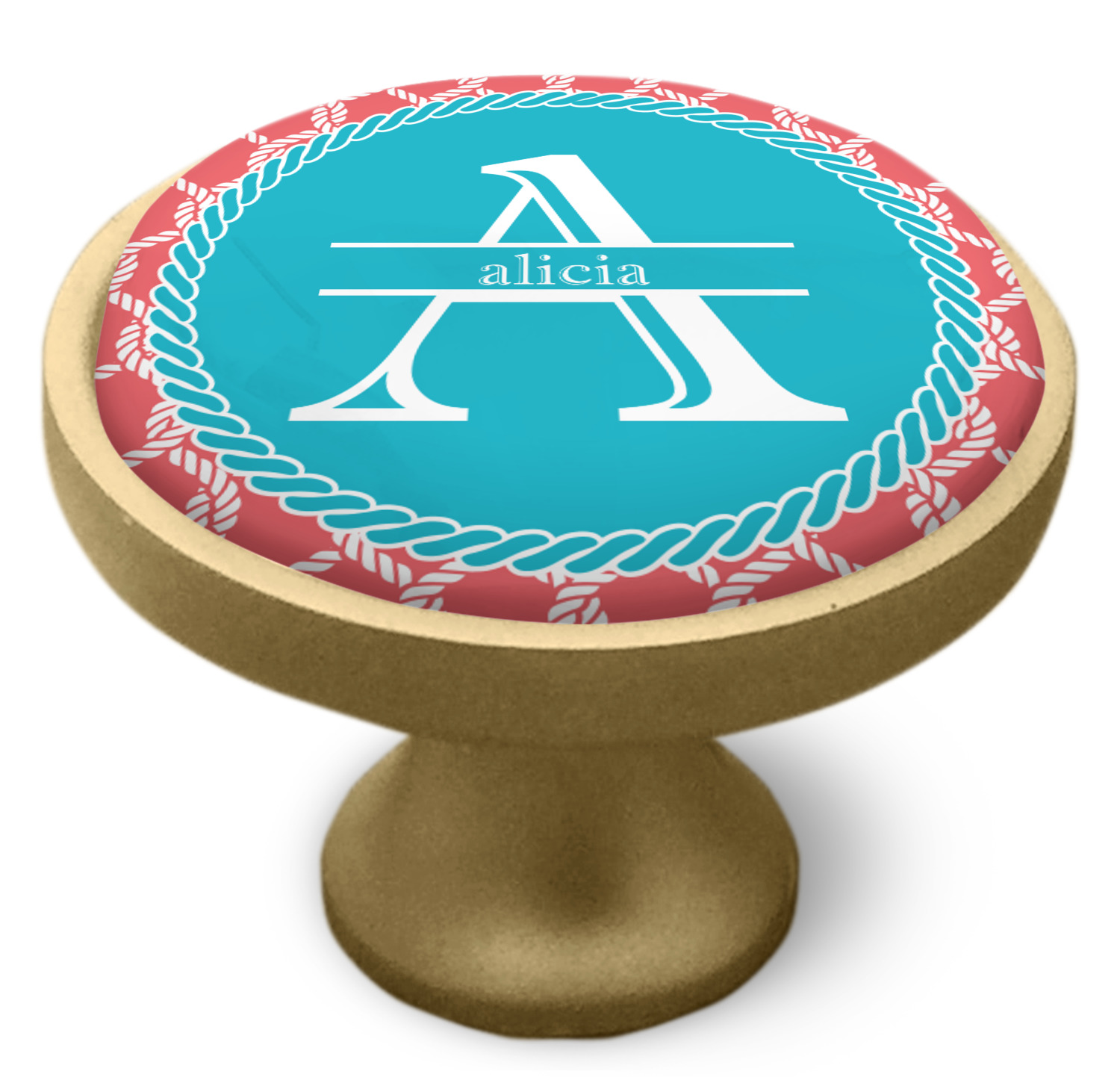 This linked ropes design is perfect for your real or dream beach house. The nautical design has ropes linked together to form diamonds. We have chosen a coral and teal palette for our design. We also chose a rope label and a name initial combination for our personalization.