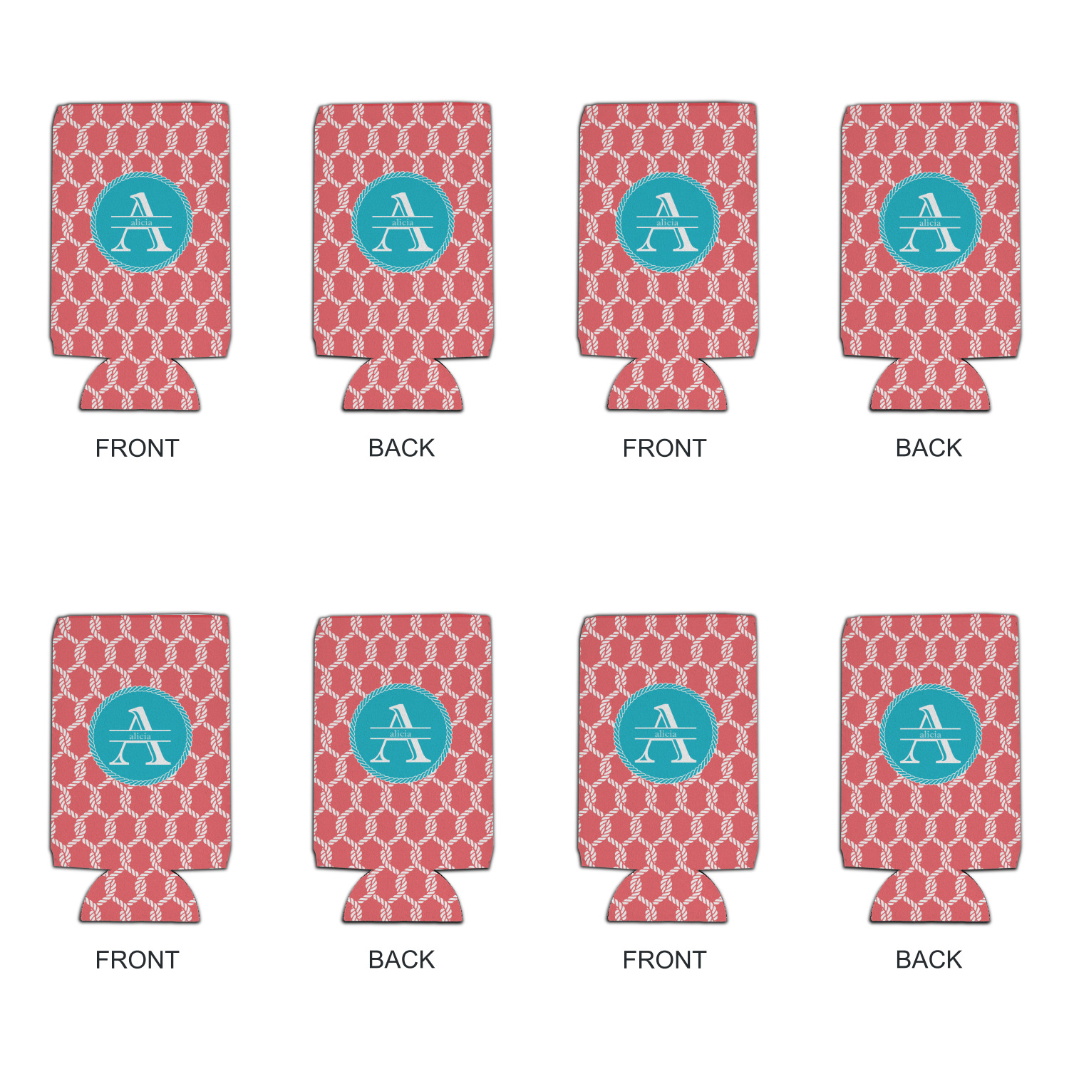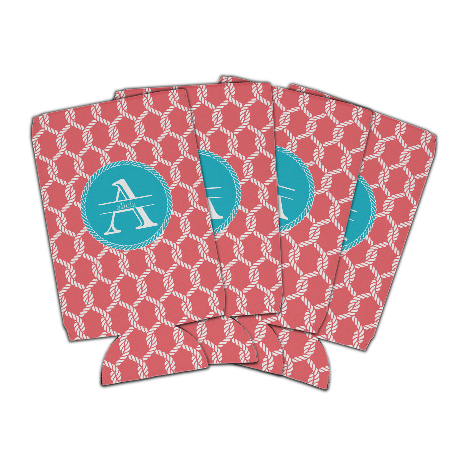 This linked ropes design is perfect for your real or dream beach house. The nautical design has ropes linked together to form diamonds. We have chosen a coral and teal palette for our design. We also chose a rope label and a name initial combination for our personalization.