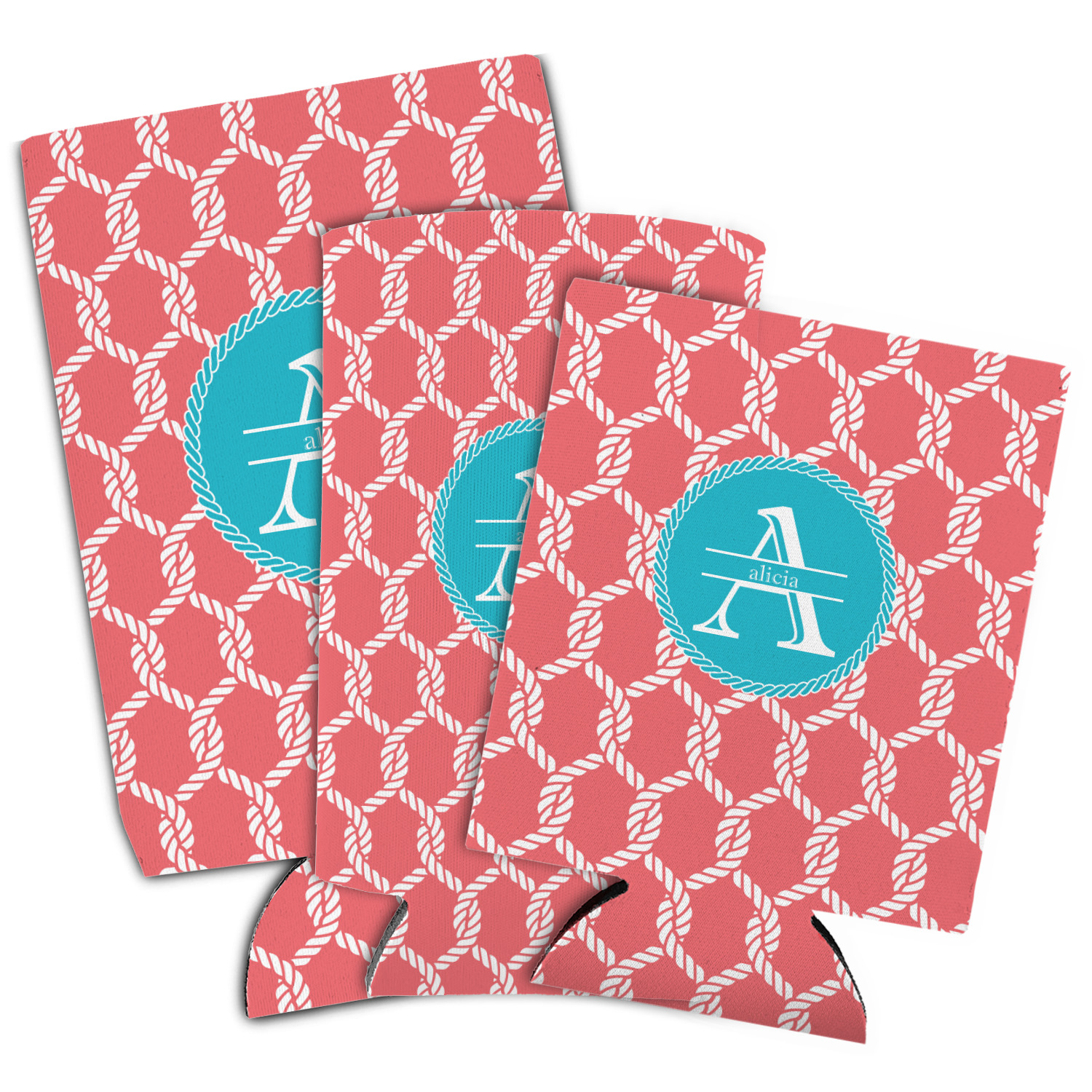 This linked ropes design is perfect for your real or dream beach house. The nautical design has ropes linked together to form diamonds. We have chosen a coral and teal palette for our design. We also chose a rope label and a name initial combination for our personalization.