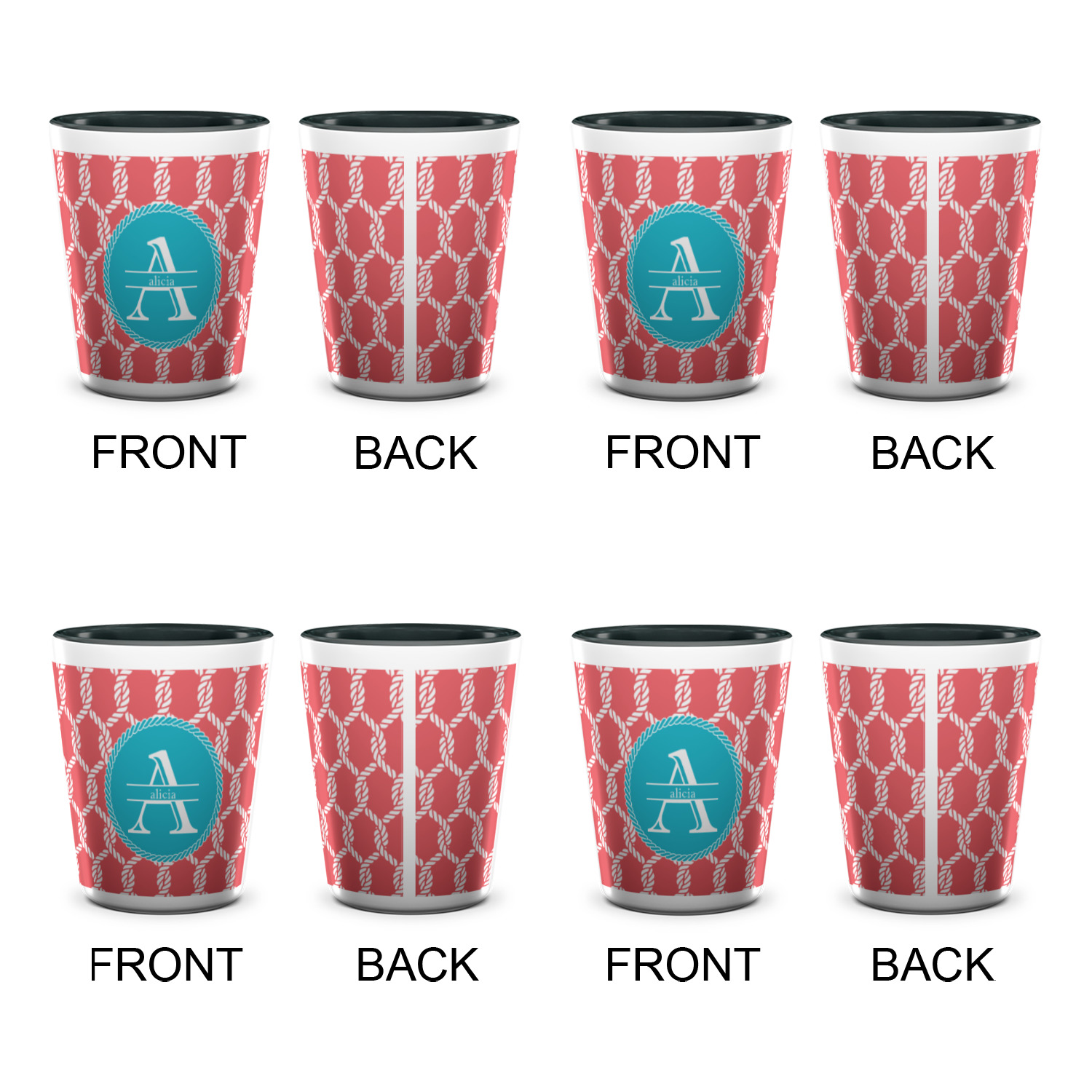 Made from ceramic these shot glasses are printed in full color with the design of your choice. These are a standard 1.5oz size and stand 2.25" tall. Available in a full white ceramic or a two-tone with a black color inside the shot glass. Buy a single or a set of 4, all of which can be designed separately to get you just what you want and need.