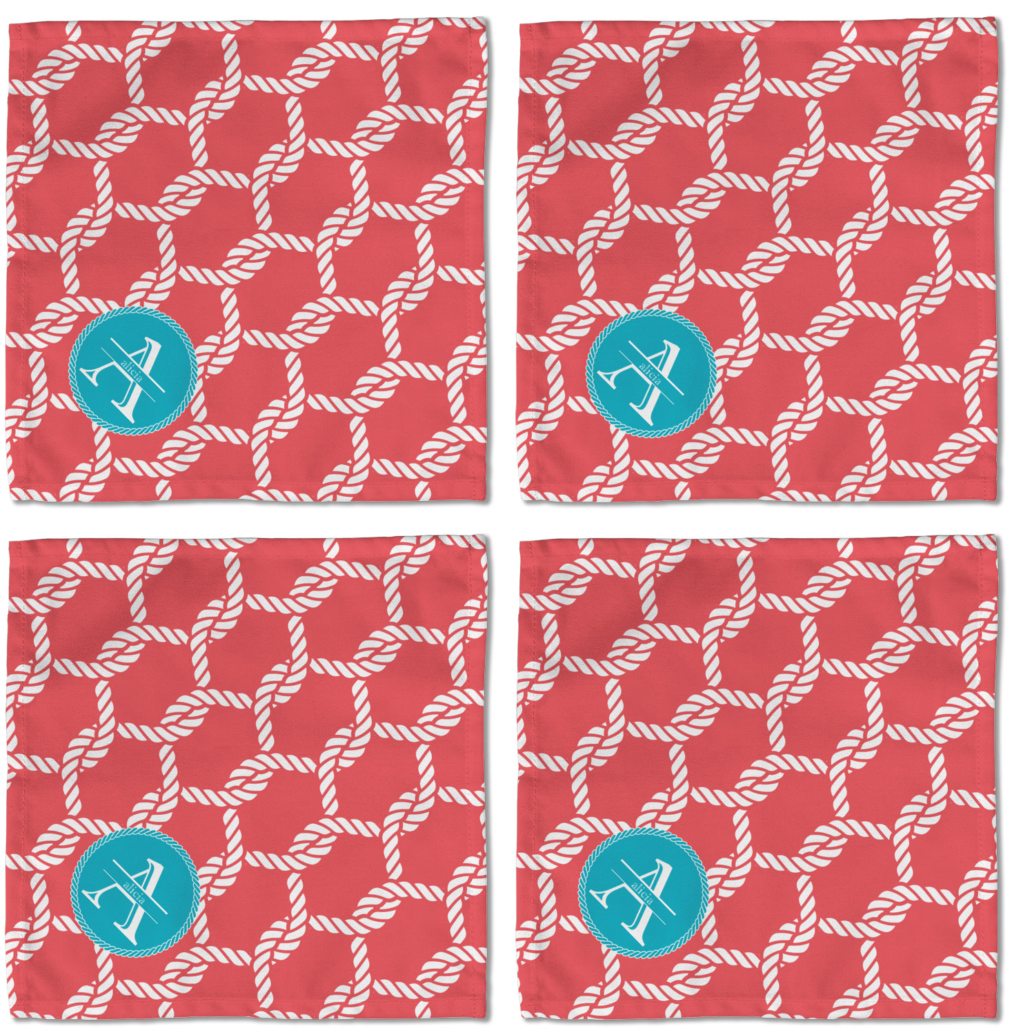 This linked ropes design is perfect for your real or dream beach house. The nautical design has ropes linked together to form diamonds. We have chosen a coral and teal palette for our design. We also chose a rope label and a name initial combination for our personalization.