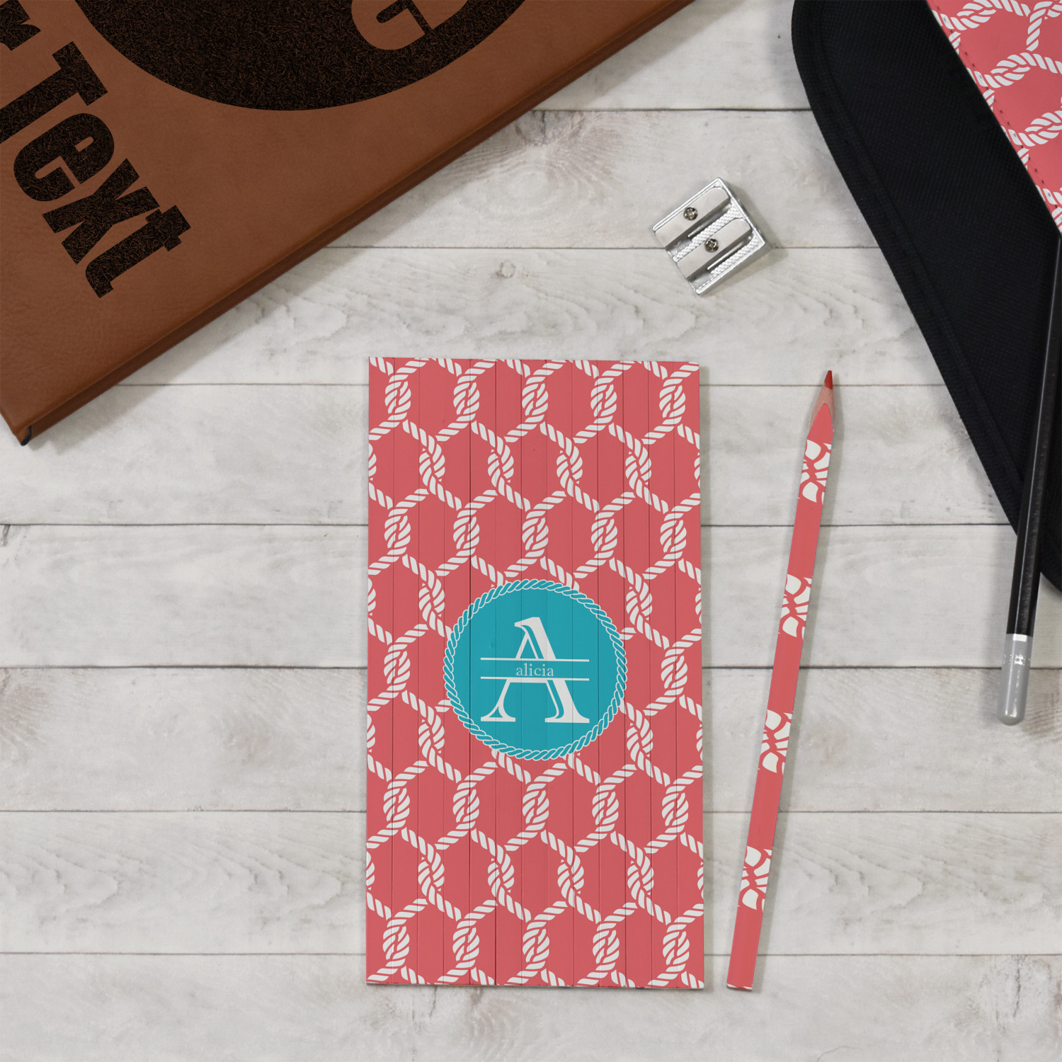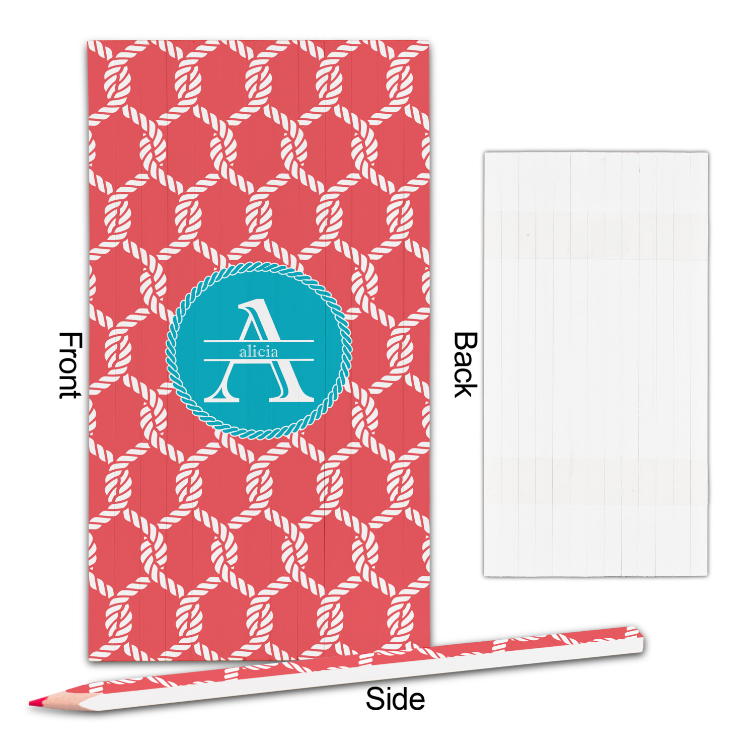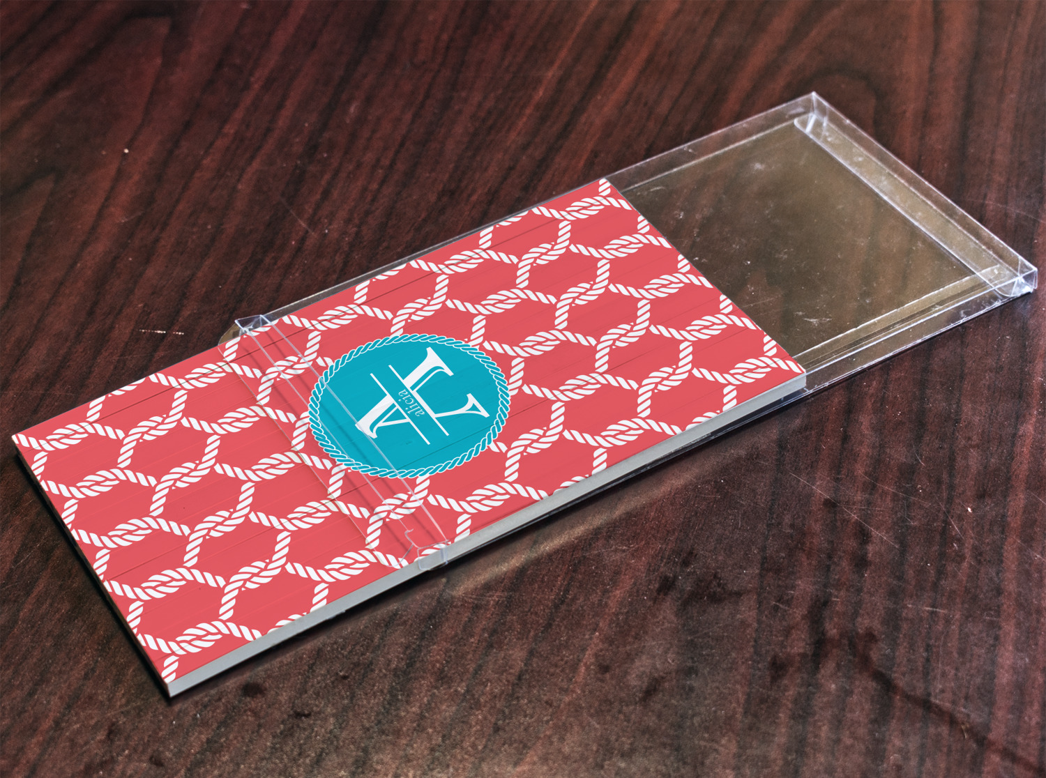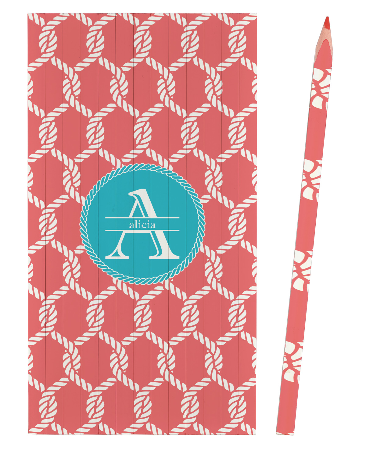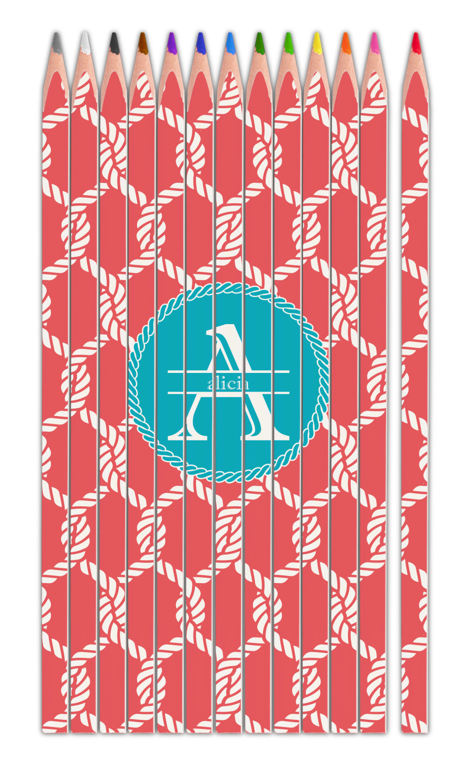 This linked ropes design is perfect for your real or dream beach house. The nautical design has ropes linked together to form diamonds. We have chosen a coral and teal palette for our design. We also chose a rope label and a name initial combination for our personalization.