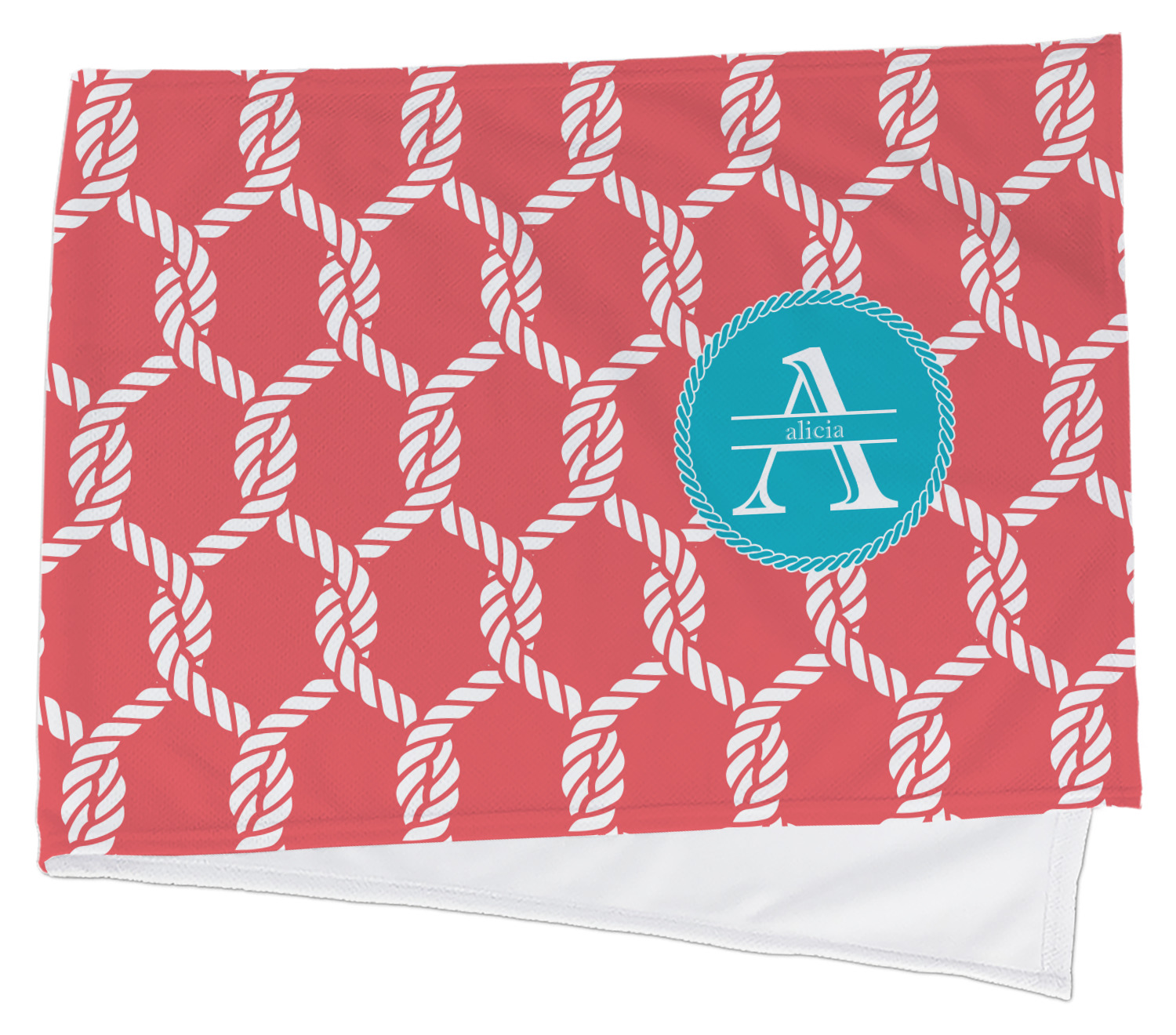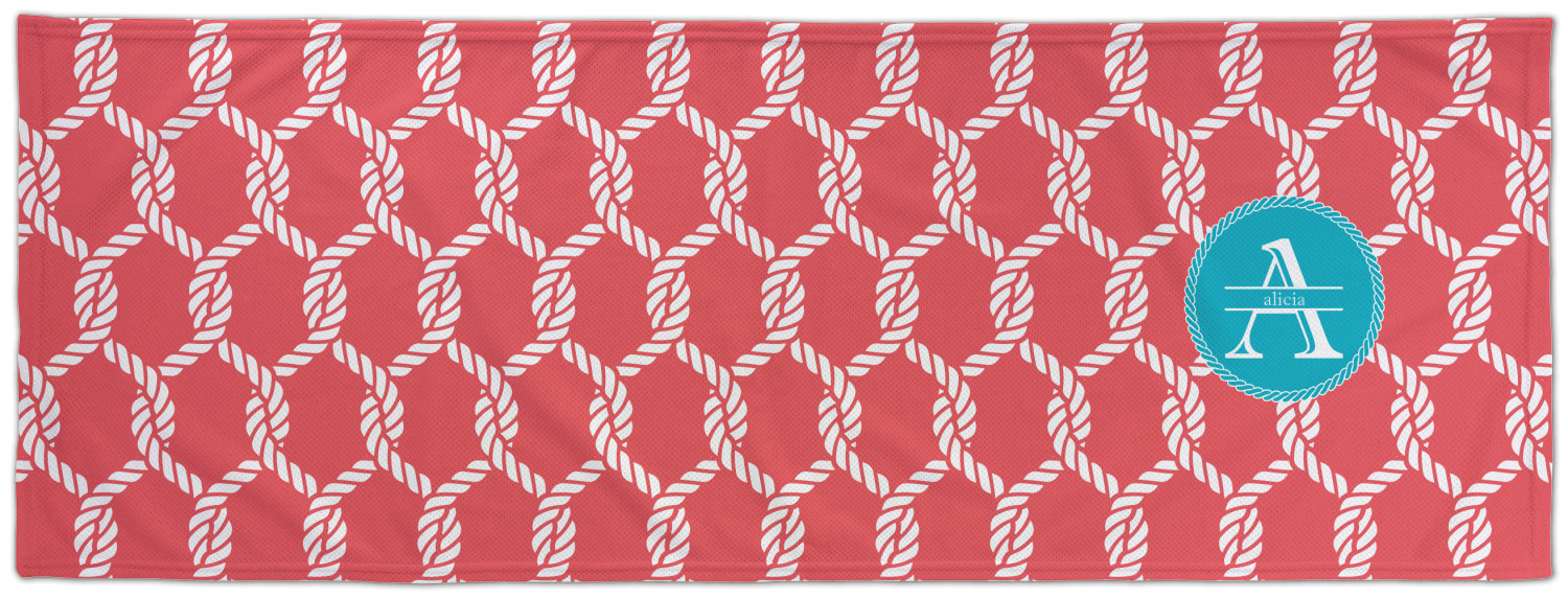 This linked ropes design is perfect for your real or dream beach house. The nautical design has ropes linked together to form diamonds. We have chosen a coral and teal palette for our design. We also chose a rope label and a name initial combination for our personalization.