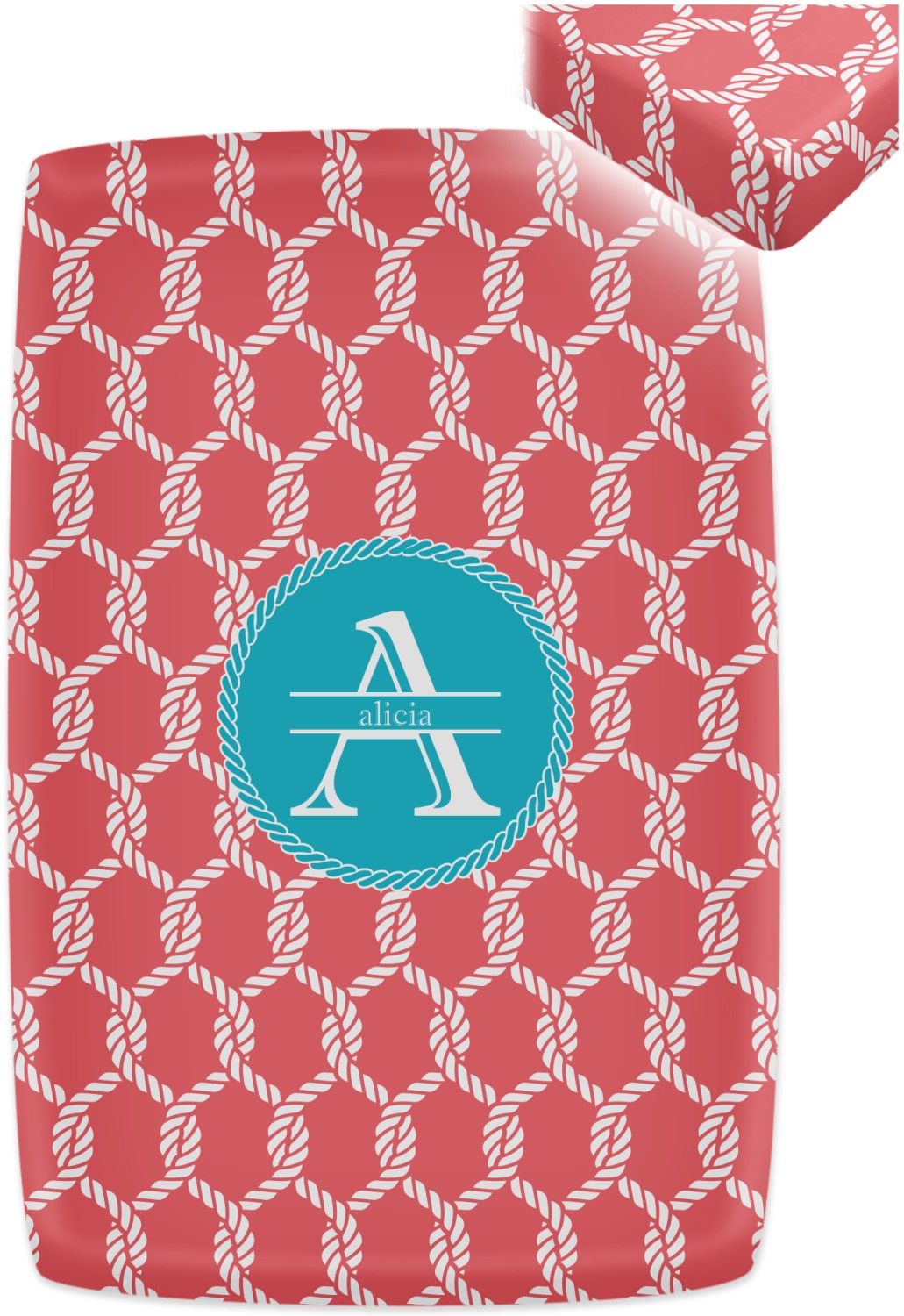 This linked ropes design is perfect for your real or dream beach house. The nautical design has ropes linked together to form diamonds. We have chosen a coral and teal palette for our design. We also chose a rope label and a name initial combination for our personalization.
