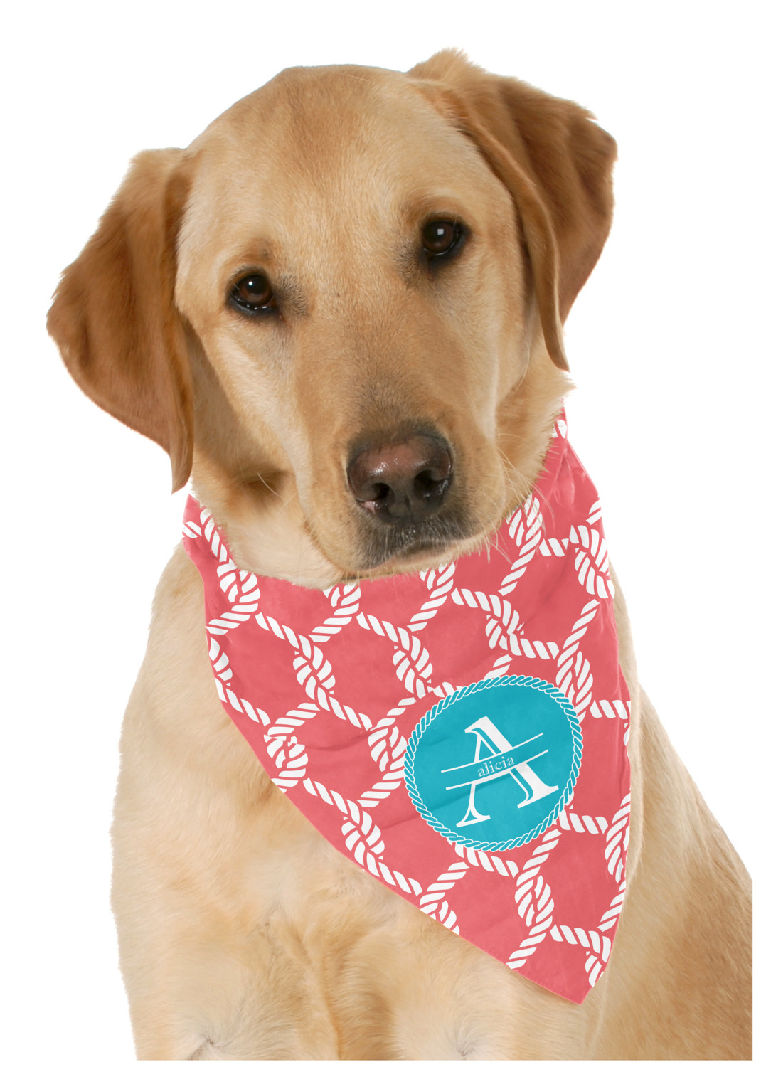 This beautiful pet bandana really is the perfect accessory. It is made from a silky feeling polyester and measures at approximately 23" x 23". Your personalization will be printed on a diagonal, so that you are able to read the personalization when folded into a triangle. This bandana fits best on large dogs, but can be folded smaller if there is no personalized text to fit smaller pets.