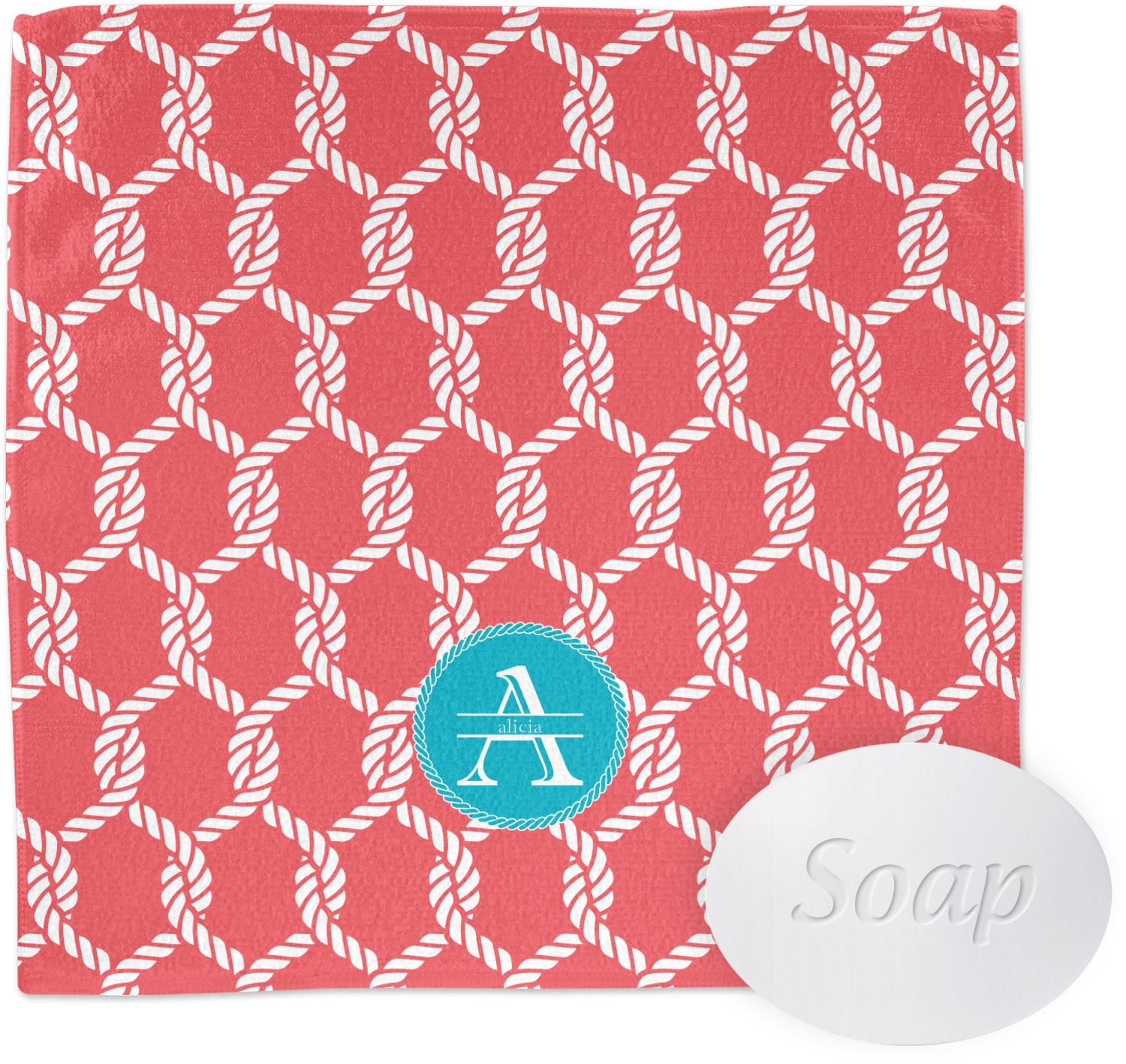 This linked ropes design is perfect for your real or dream beach house. The nautical design has ropes linked together to form diamonds. We have chosen a coral and teal palette for our design. We also chose a rope label and a name initial combination for our personalization.