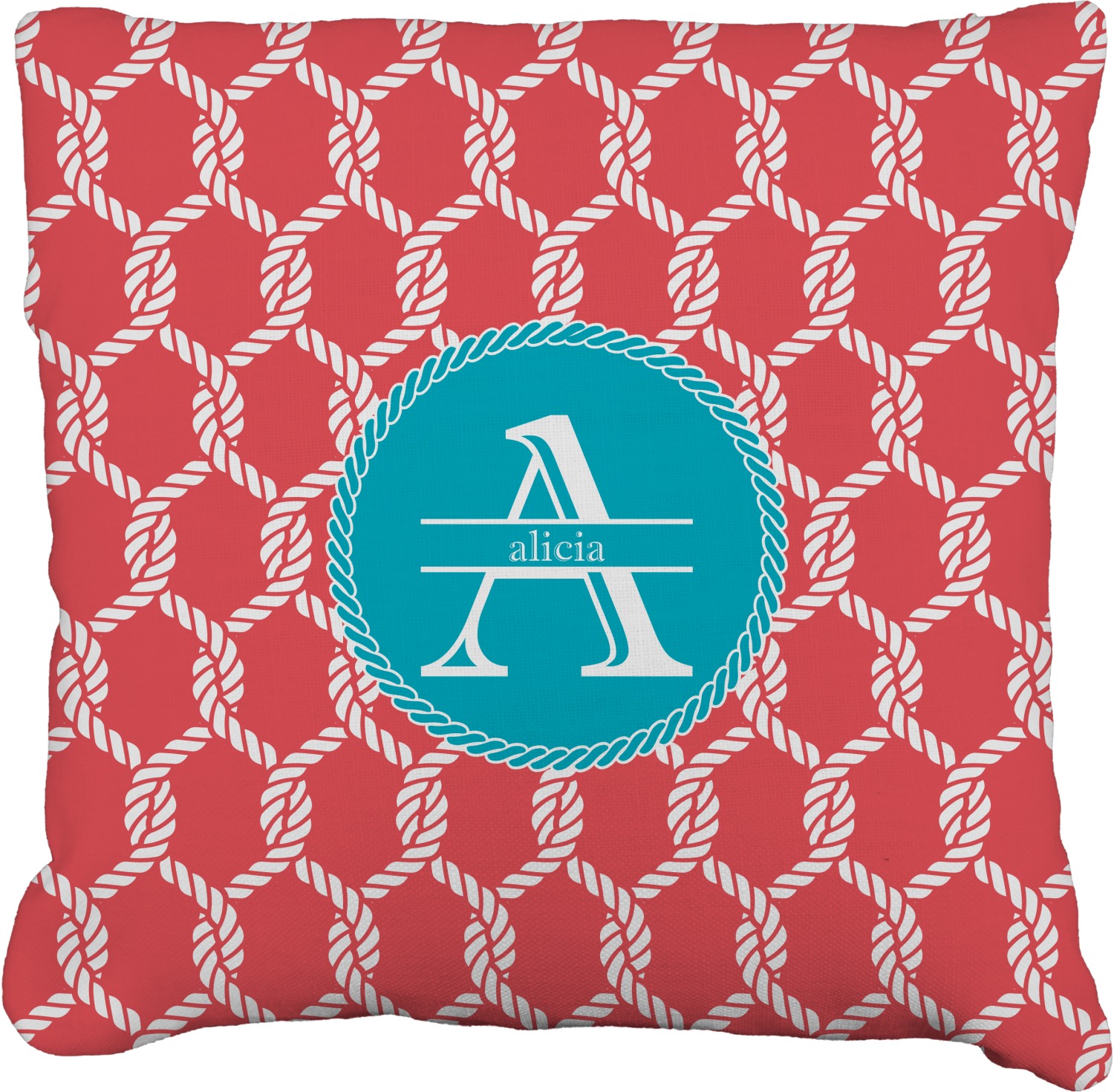 This linked ropes design is perfect for your real or dream beach house. The nautical design has ropes linked together to form diamonds. We have chosen a coral and teal palette for our design. We also chose a rope label and a name initial combination for our personalization.