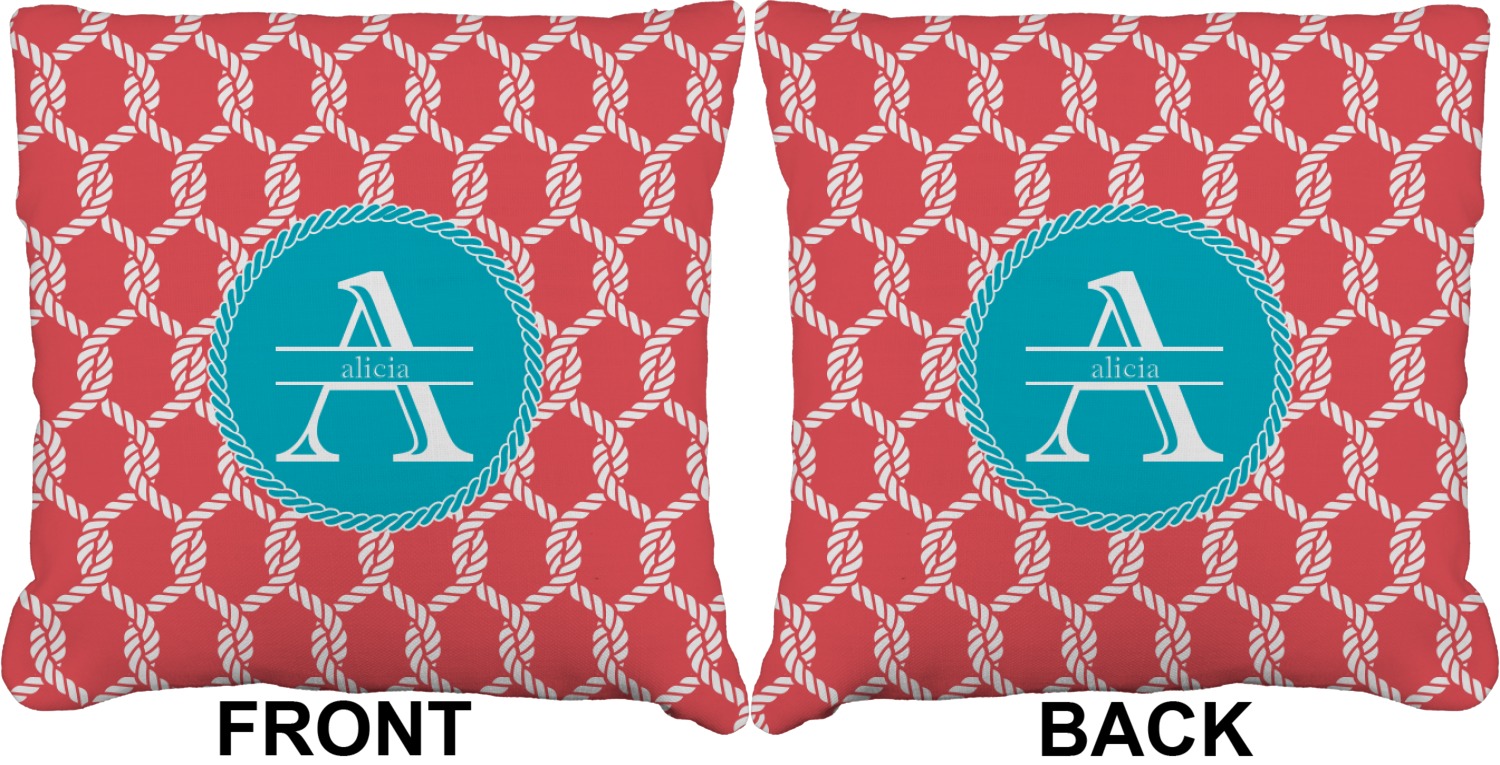 This linked ropes design is perfect for your real or dream beach house. The nautical design has ropes linked together to form diamonds. We have chosen a coral and teal palette for our design. We also chose a rope label and a name initial combination for our personalization.