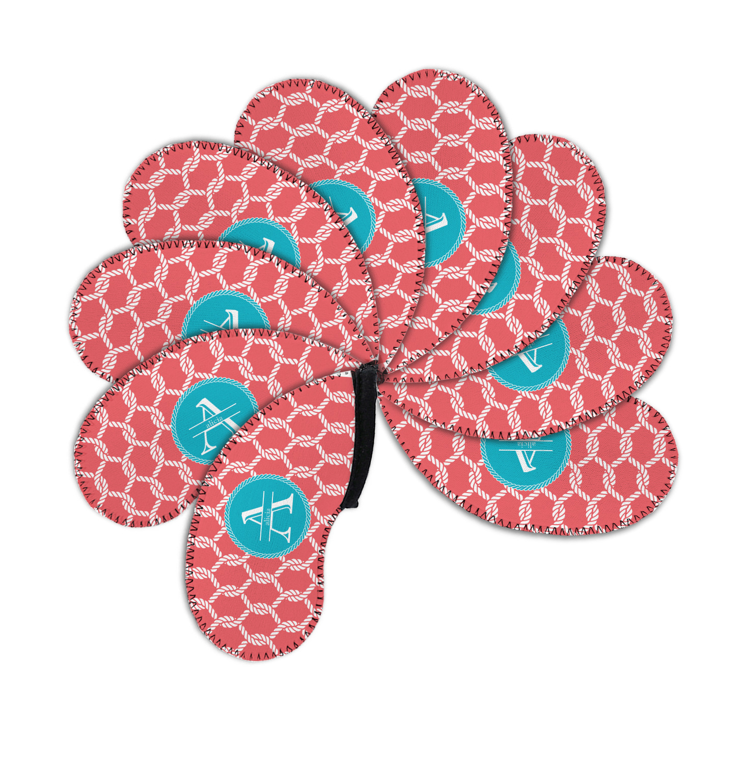 This linked ropes design is perfect for your real or dream beach house. The nautical design has ropes linked together to form diamonds. We have chosen a coral and teal palette for our design. We also chose a rope label and a name initial combination for our personalization.