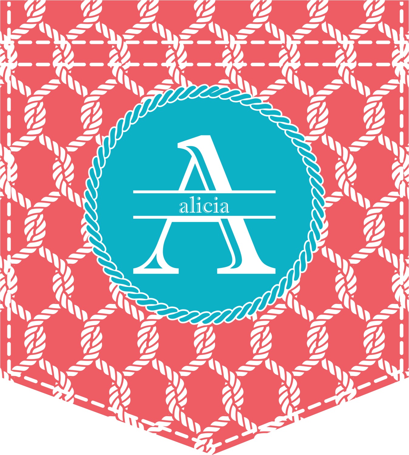 This linked ropes design is perfect for your real or dream beach house. The nautical design has ropes linked together to form diamonds. We have chosen a coral and teal palette for our design. We also chose a rope label and a name initial combination for our personalization.