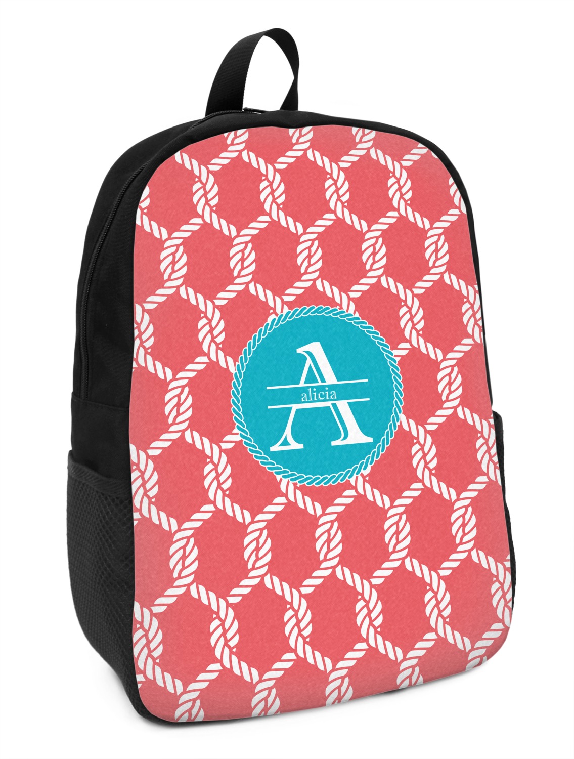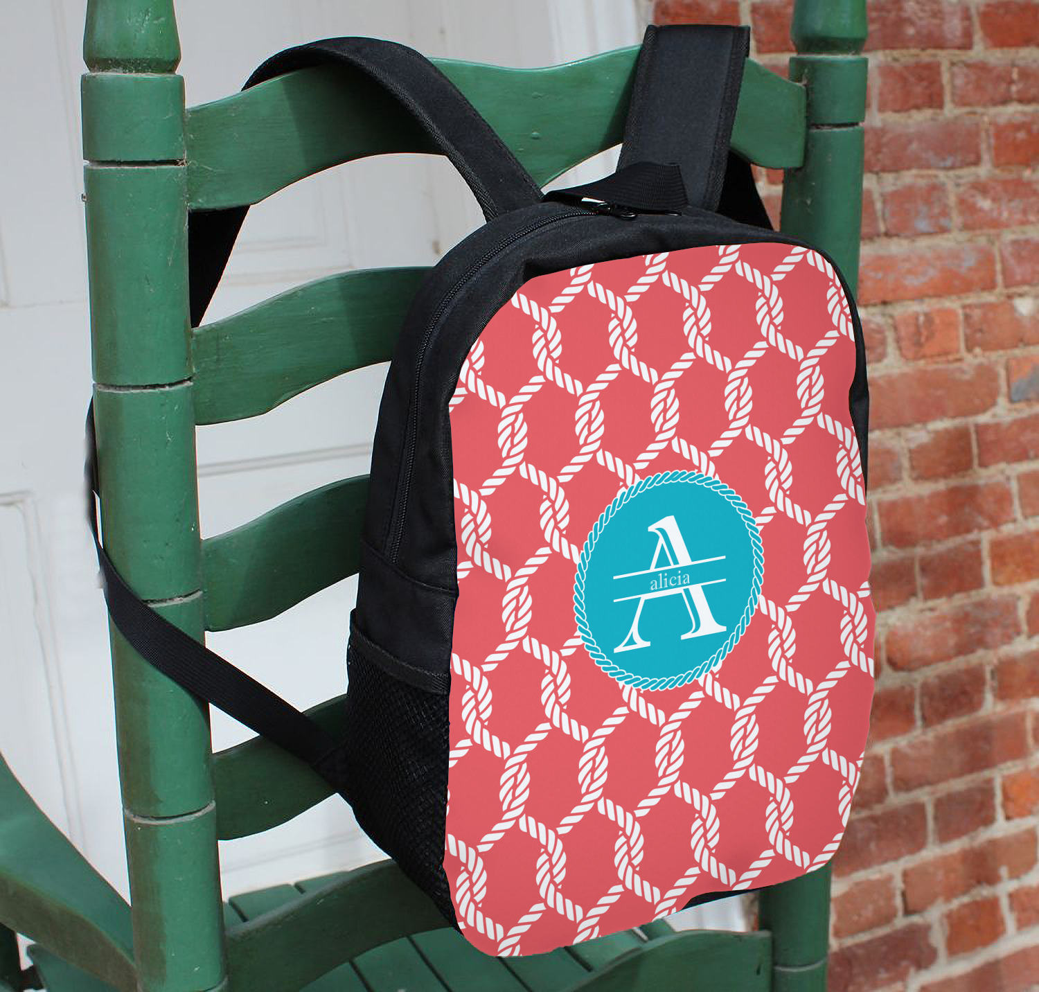 This linked ropes design is perfect for your real or dream beach house. The nautical design has ropes linked together to form diamonds. We have chosen a coral and teal palette for our design. We also chose a rope label and a name initial combination for our personalization.