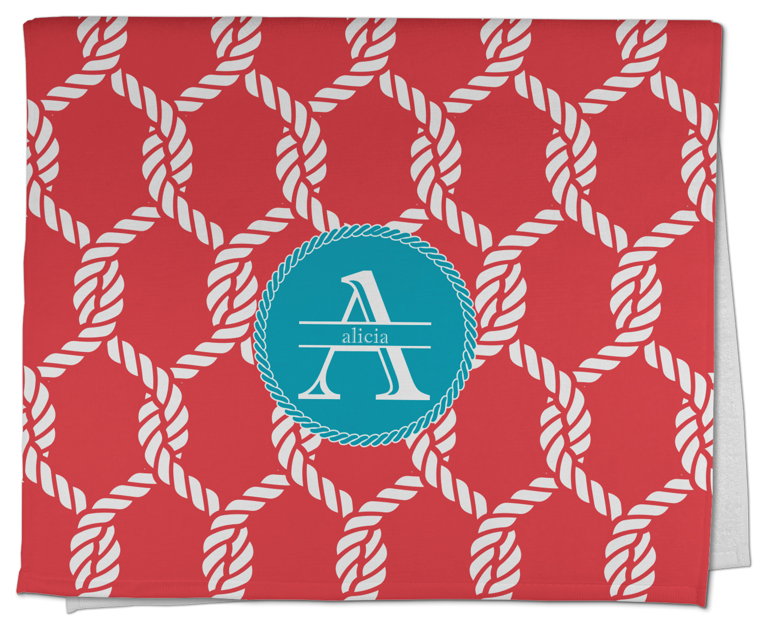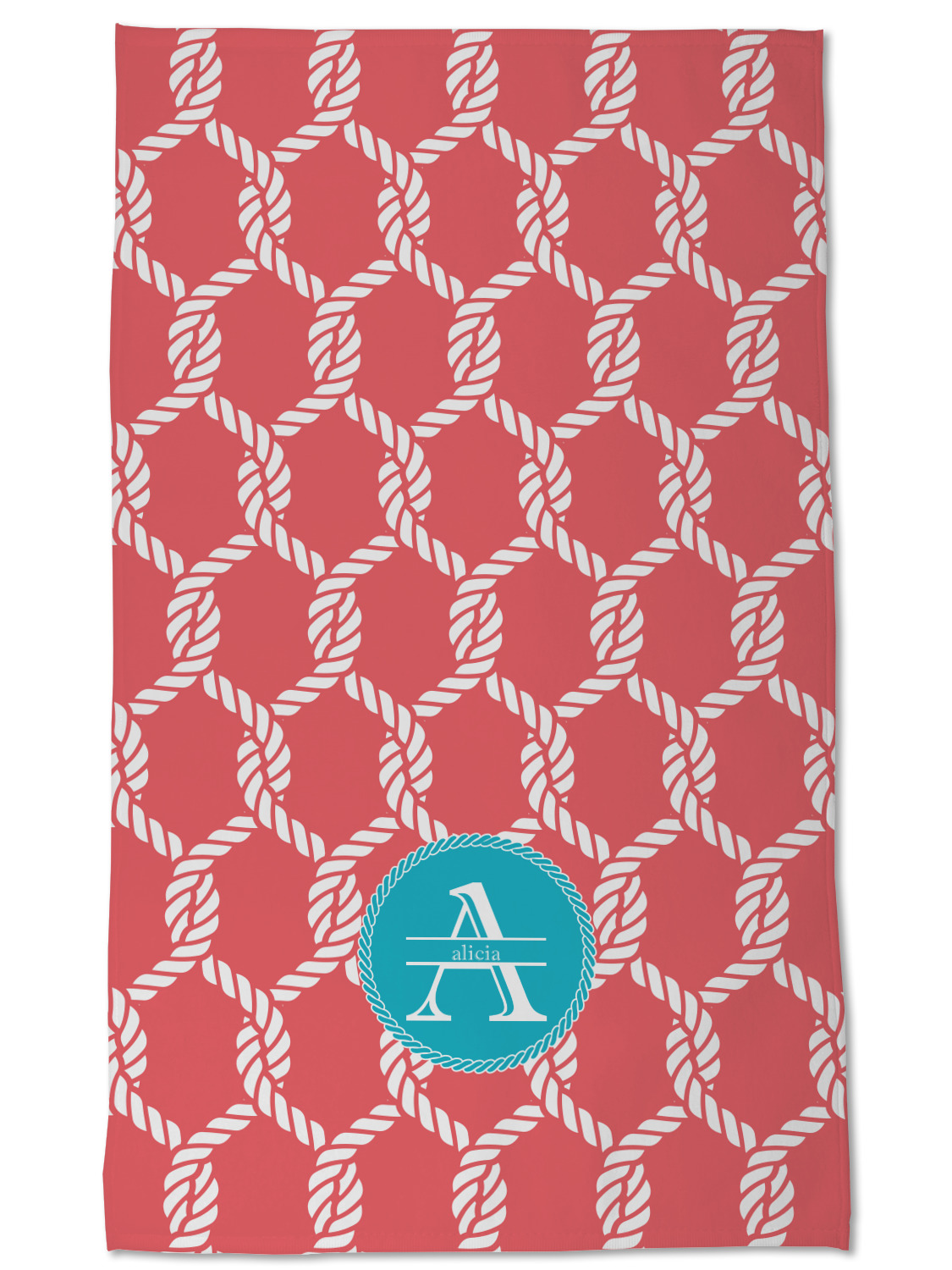 This linked ropes design is perfect for your real or dream beach house. The nautical design has ropes linked together to form diamonds. We have chosen a coral and teal palette for our design. We also chose a rope label and a name initial combination for our personalization.