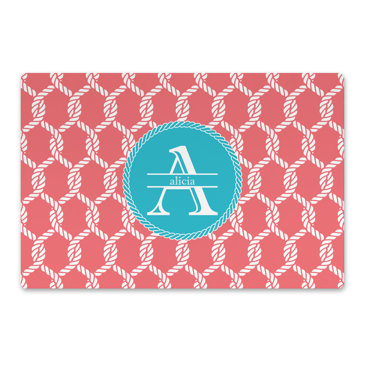 This linked ropes design is perfect for your real or dream beach house. The nautical design has ropes linked together to form diamonds. We have chosen a coral and teal palette for our design. We also chose a rope label and a name initial combination for our personalization.